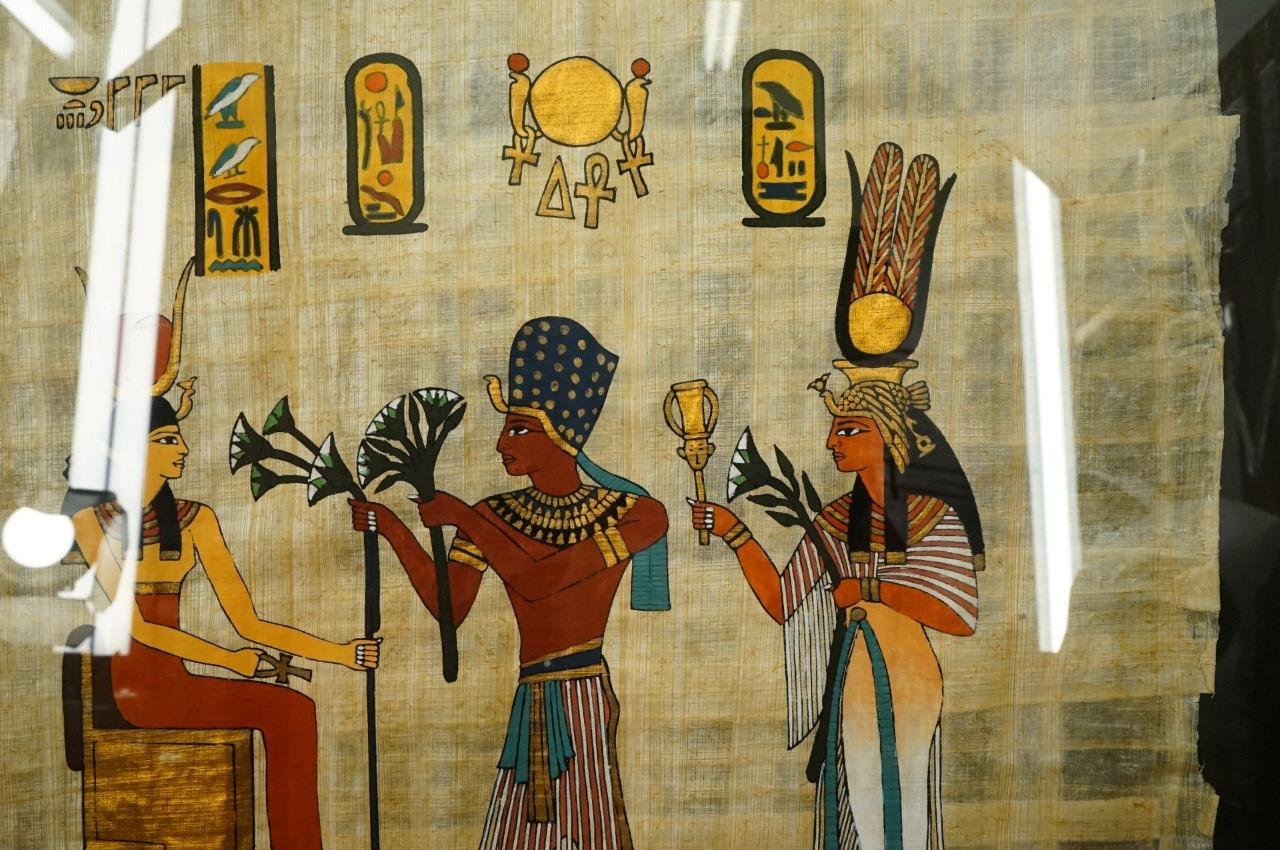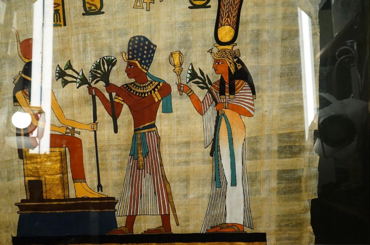 Egyptian Papyrus Original Art Painting King Ramses II Goddess Hathor Nefertari