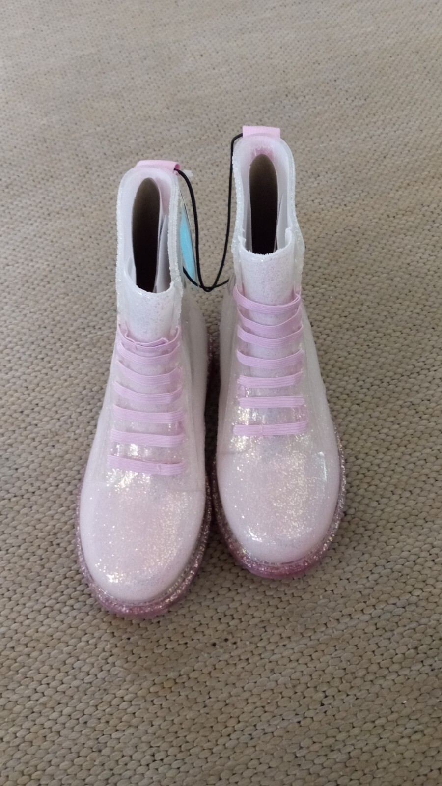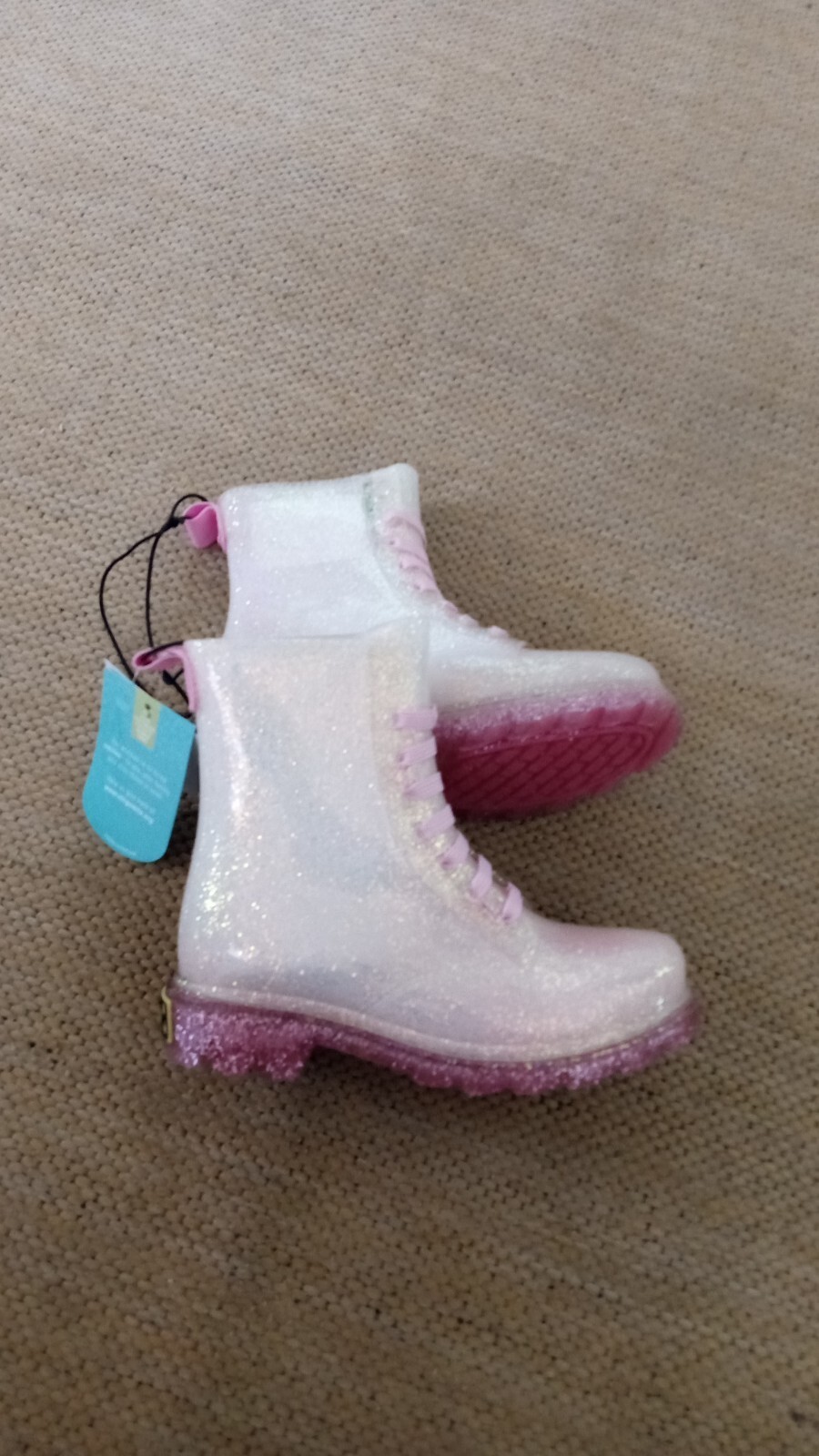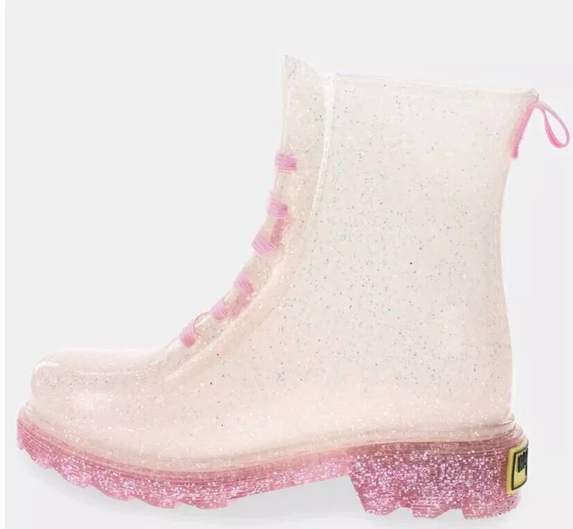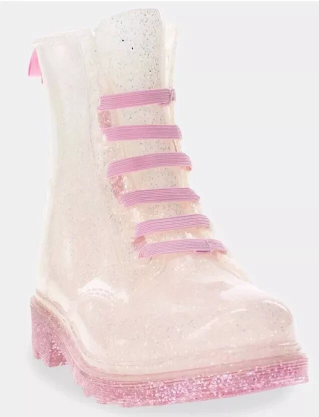 Western Chief Girl's Shimmer Glitter Lighted Combat Boots (Sz-11) Iridescent NEW