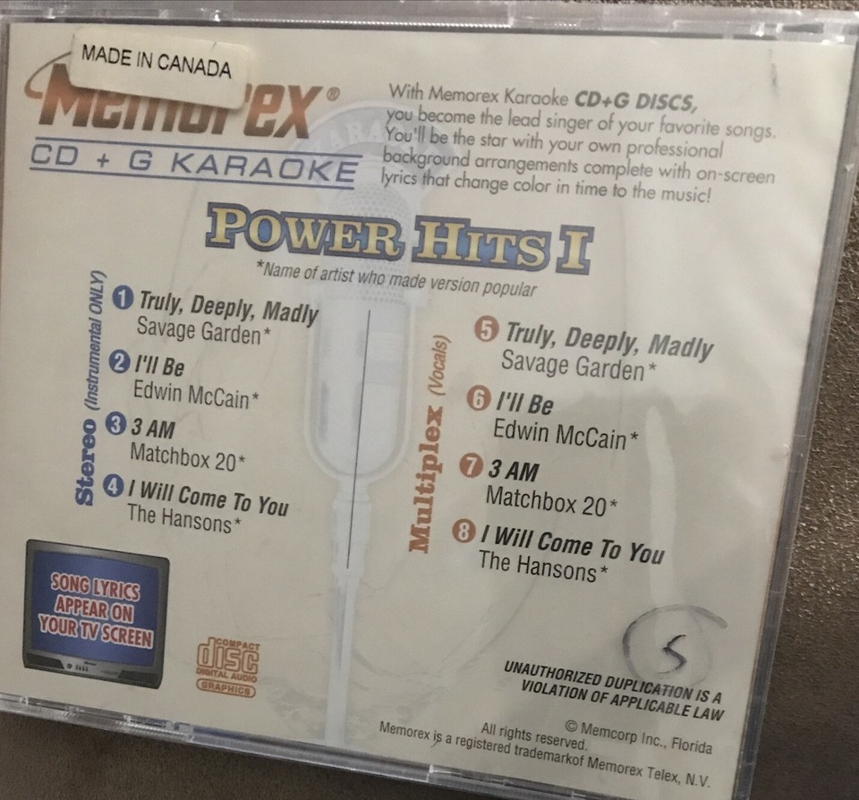 Power Hits 1 - Karaoke Cd + G - Memorex - and 24 similar items