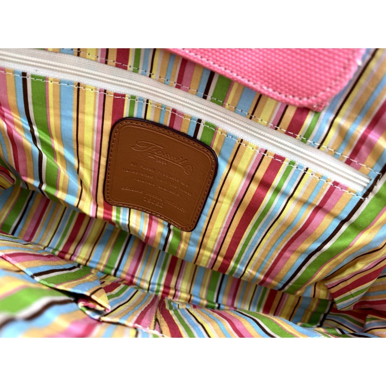 fossil pink canvas brown leather handbag satchel tote shopper key charm 75082