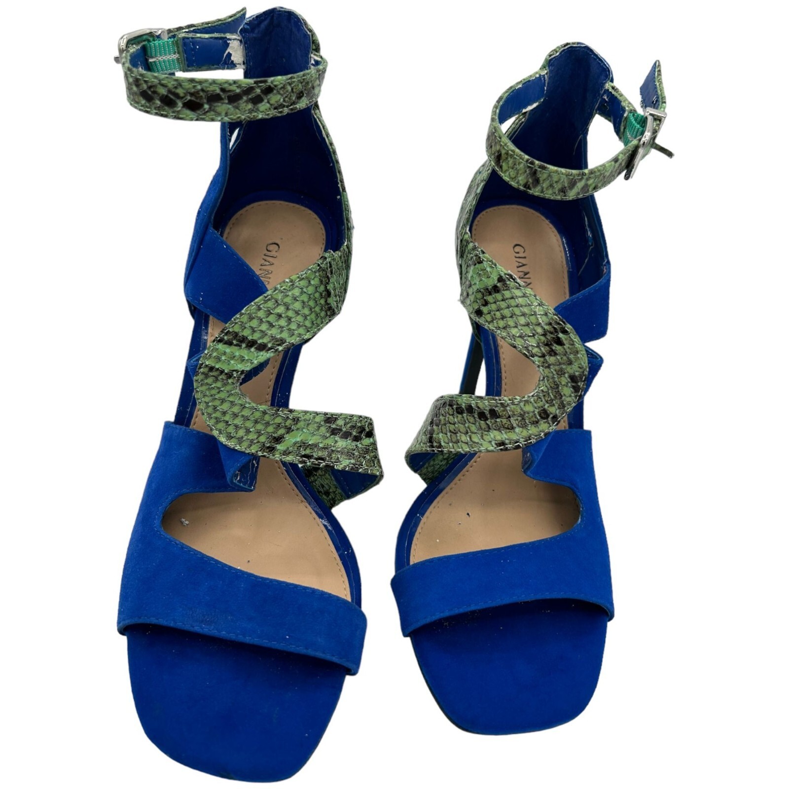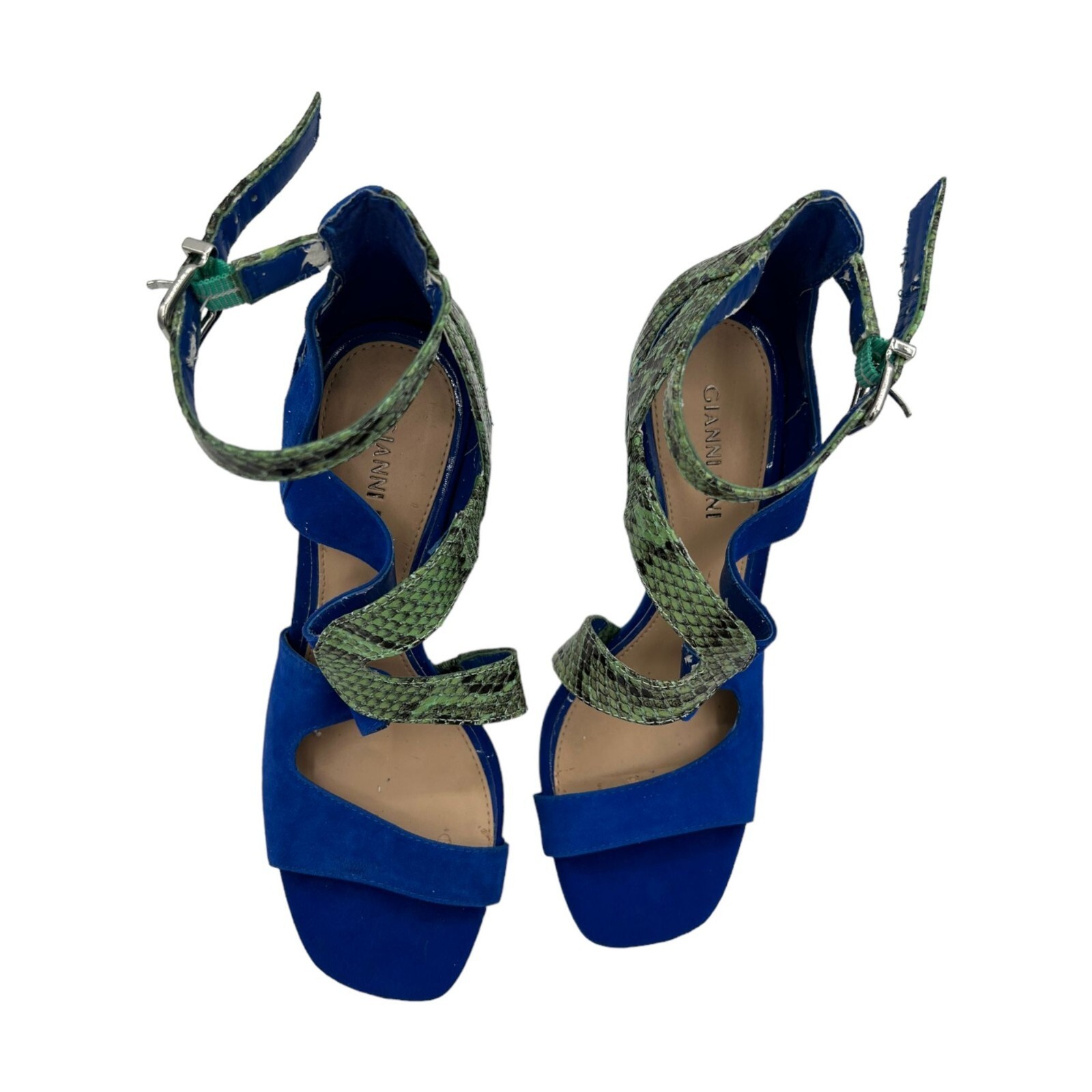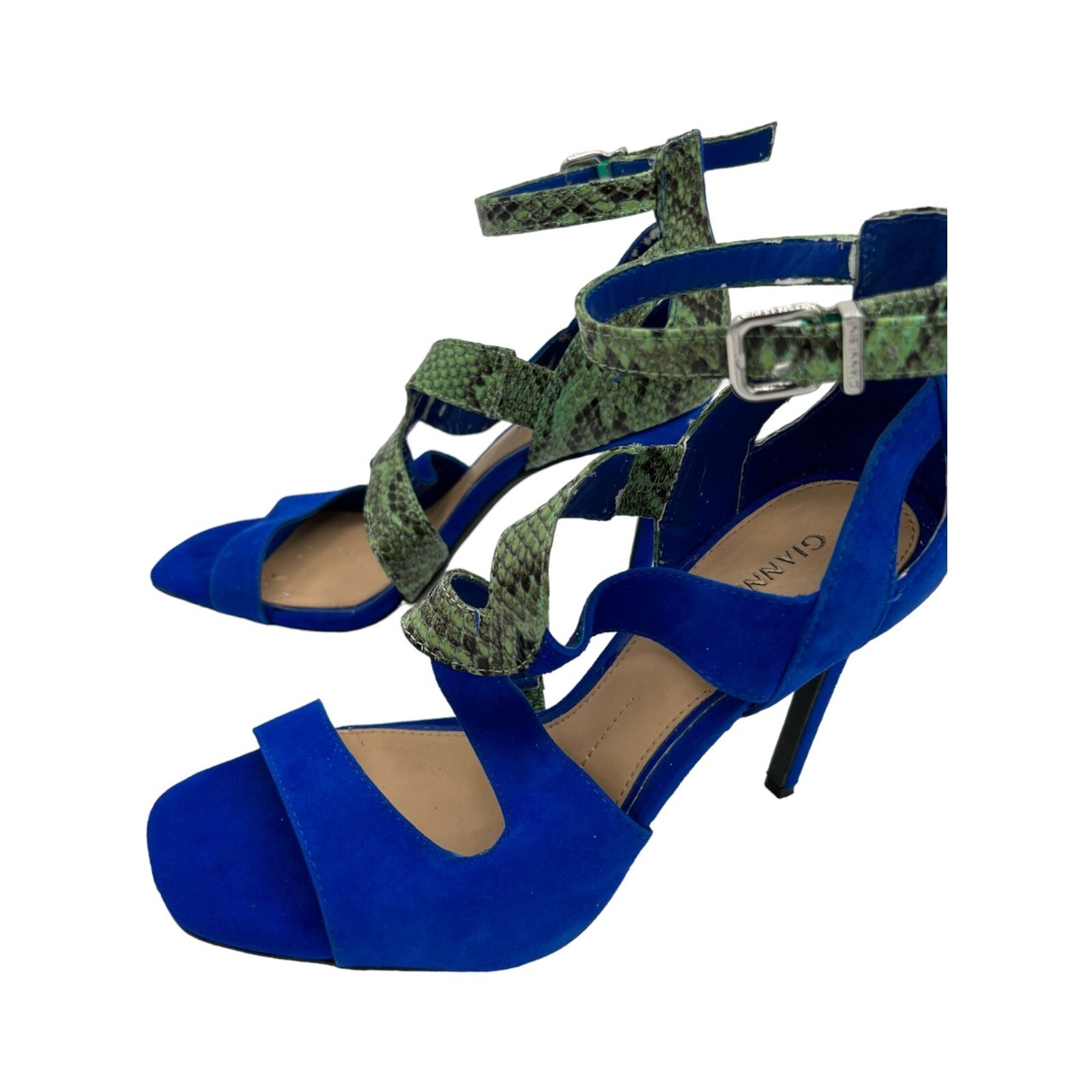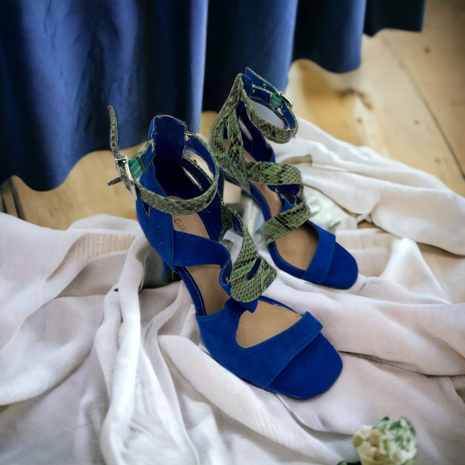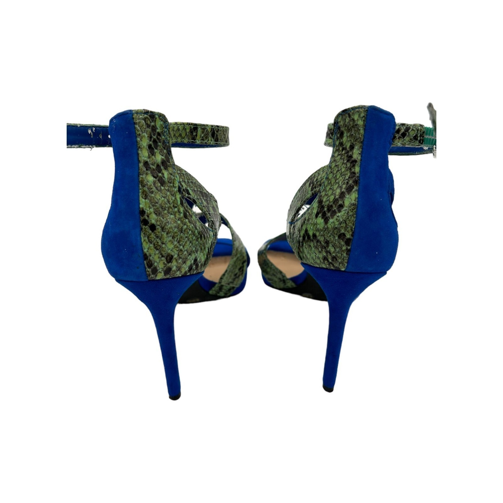 Gianni Bini Blue Suede Green Snake Skin 4" Stiletto Sandal Heels 6.5M