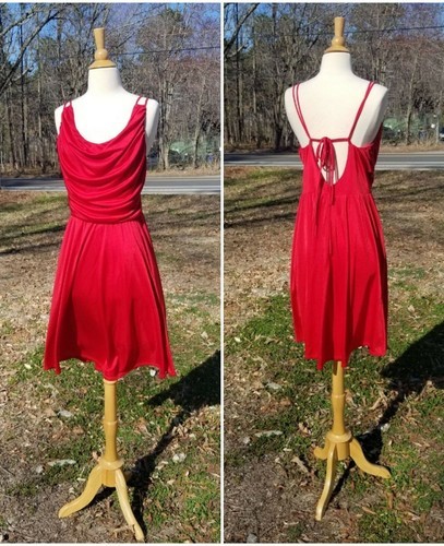 Vintage 90s Betsey Johnson Red Liquid Jersey Lace Back Dress