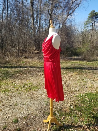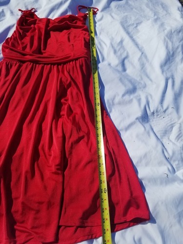 What a charming dress for a special night out with freinds. Sexy lace up back. Body flattering liquid jersey fabric. Dress has a stretchy fabric and it will give 3" from the measurements showsn in photos.