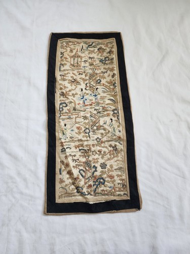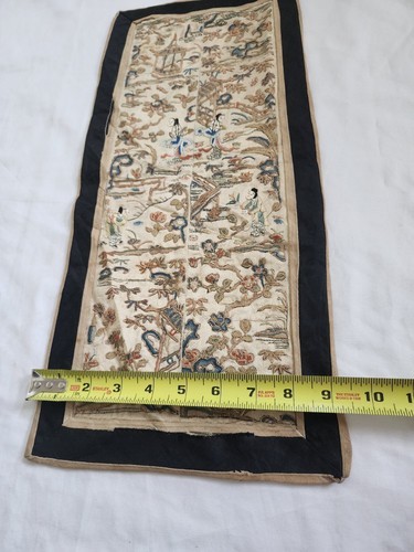 Antique 19c Qing Dynasty Chinese Embroidery silk Panel remnant people garden