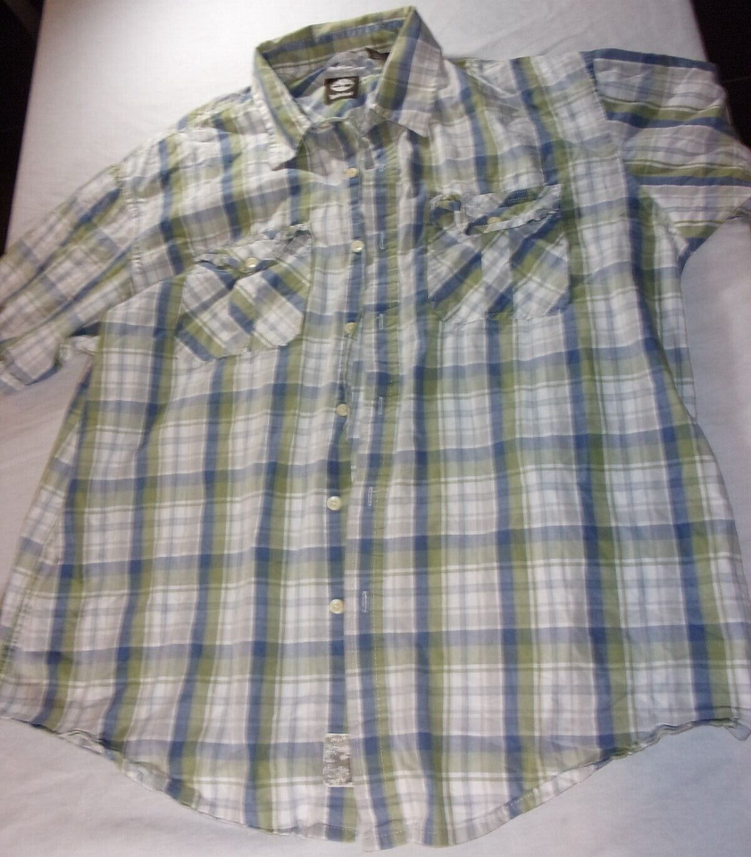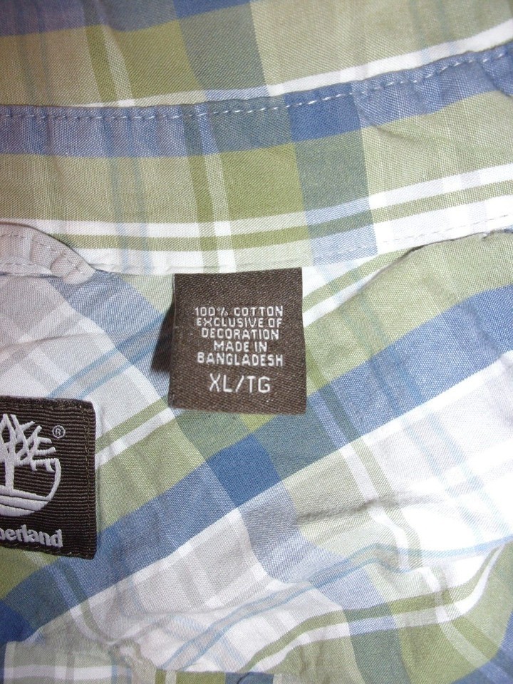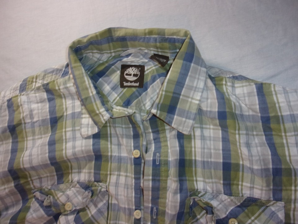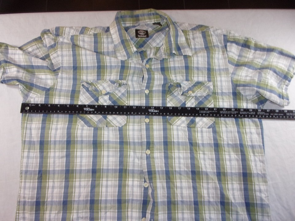 TIMBERLAND CASUAL HOT WEATHER BLUE GREEN WHITE SHORT SLEEVE BUTTON UP SHIRT XL