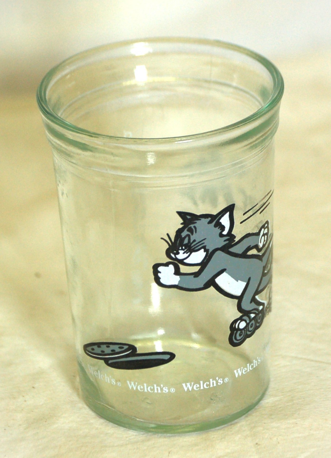 Tom & Jerry Skating Jelly Jar Glass Animation Art Character 1990 Welch's