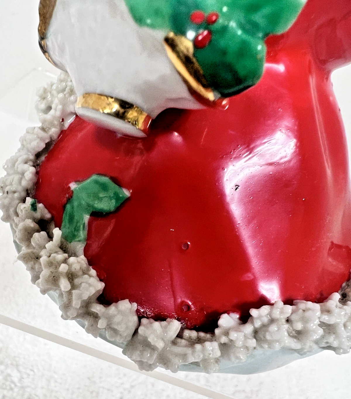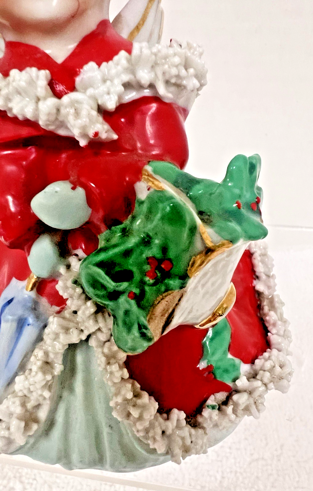 Vintage Japan Christmas Angel w Spaghetti Basket of Holly Umbrella 4 3/4" Girl In great shape so crackle to the red paint but no breaks or damage