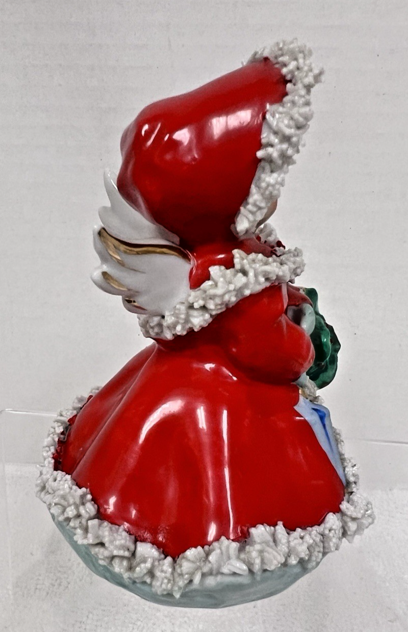 Vintage Japan Christmas Angel w Spaghetti Basket of Holly & Umbrella 4 3/4" Girl