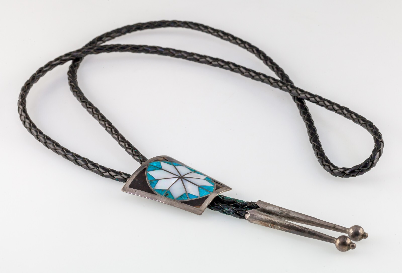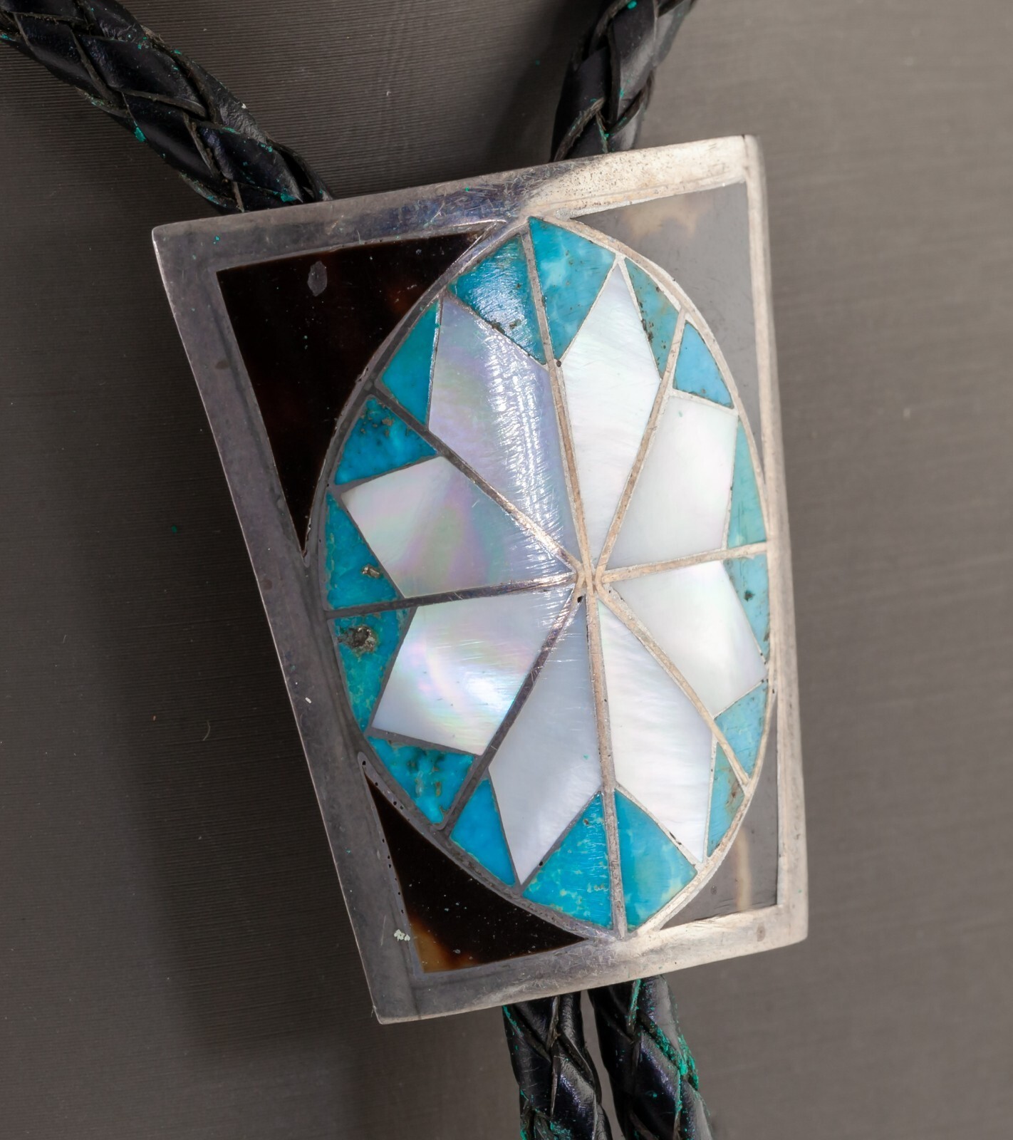 Sterlingsilber Onyx, Perlmutt, Türkis Bolo Krawatte Gestempelt Bennett
