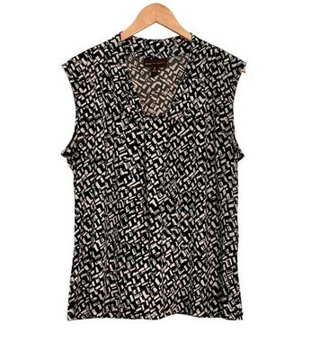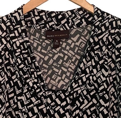 Dana Buchman Sleeveless Blouse Black White Pleat V Neck Top Stretch XL Dressy