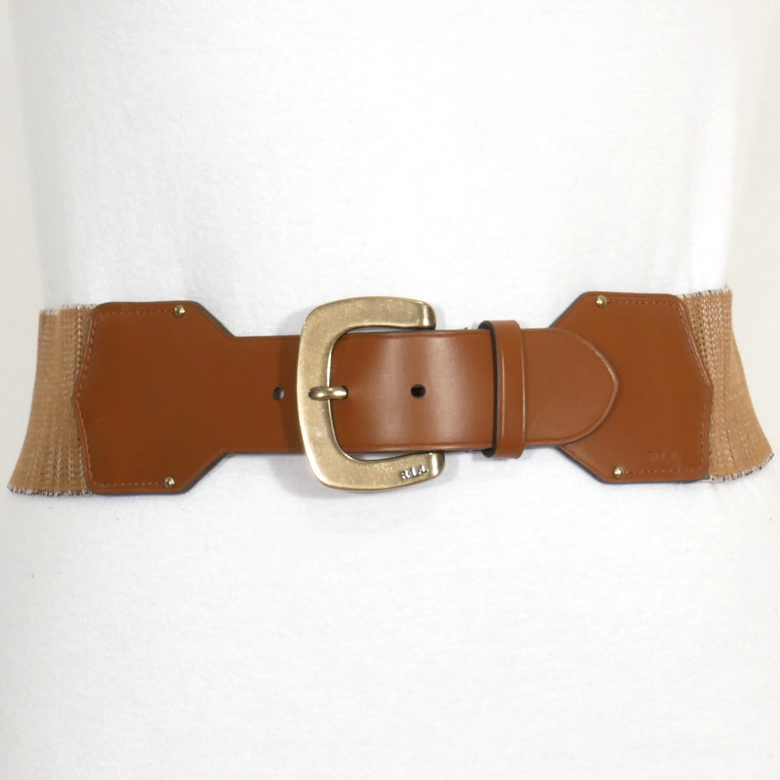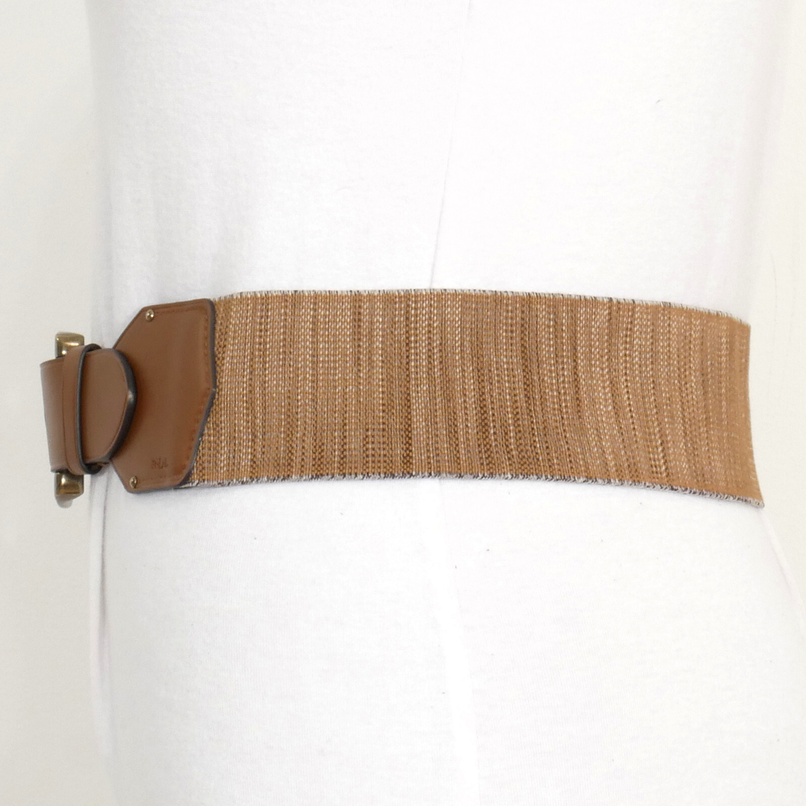 RALPH LAUREN Natural Brown Faux Leather Stretch Wide Belt M