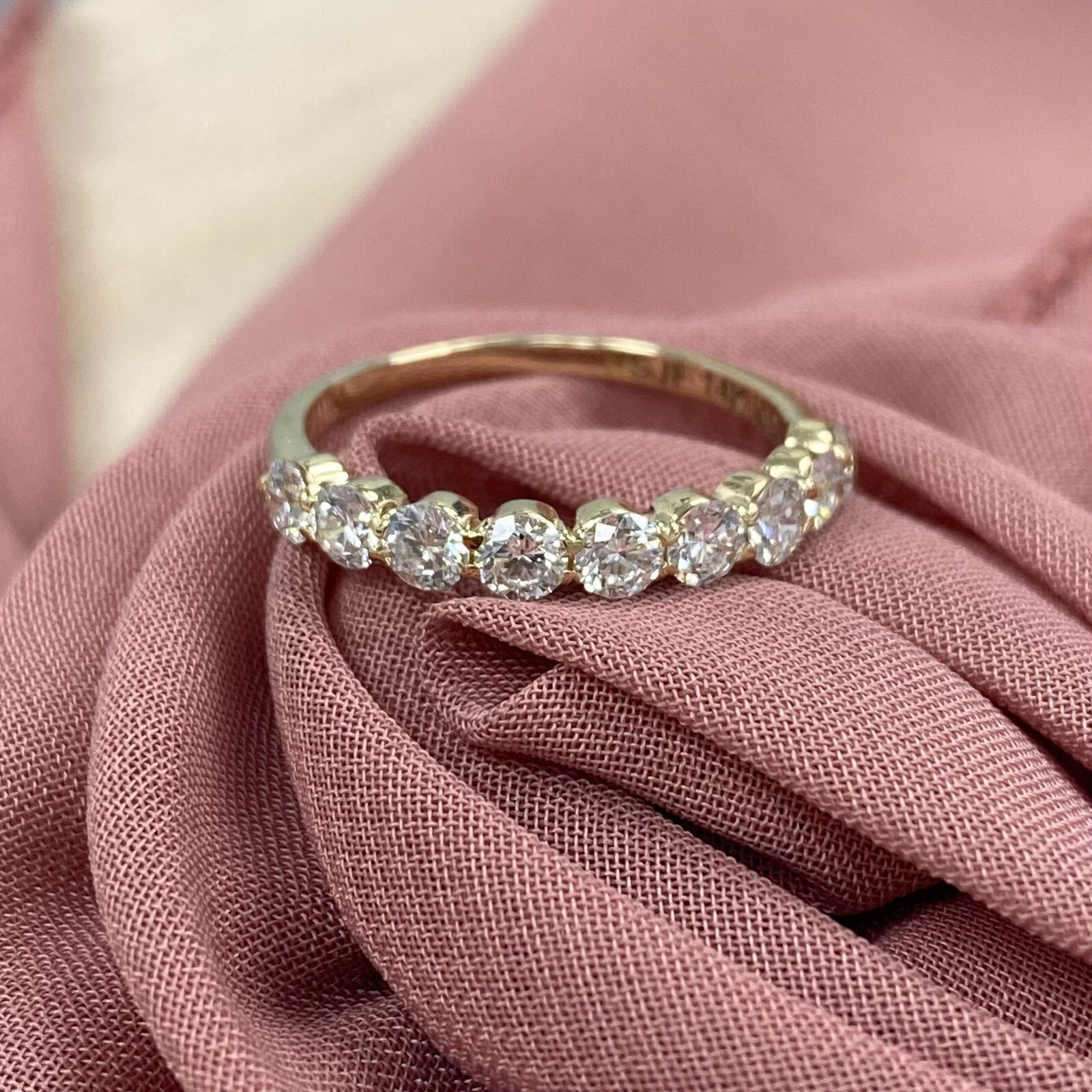 1 Carat Lab Grown Diamond Wedding Band 9 Stones 14k Gold Anniversary Ring