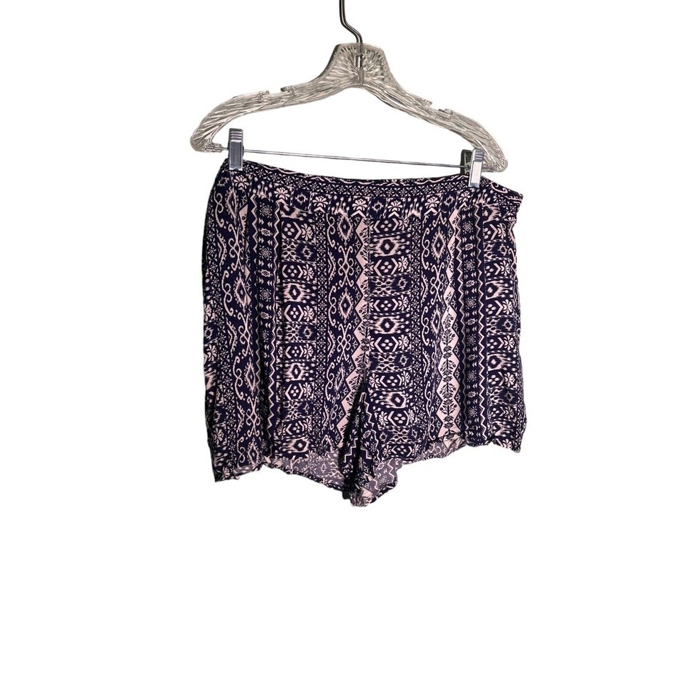 FOREVER 21 + Plus Size 2X Blue White Rayon Shorts Elastic Waist Casual Summer