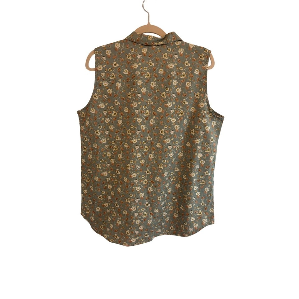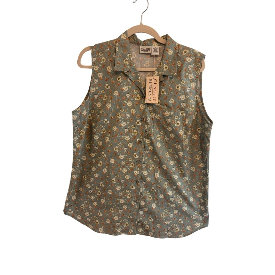 Vintage NWT Classic Elements XL Sleeveless Campshirt Top Sage Green Ditzy Floral