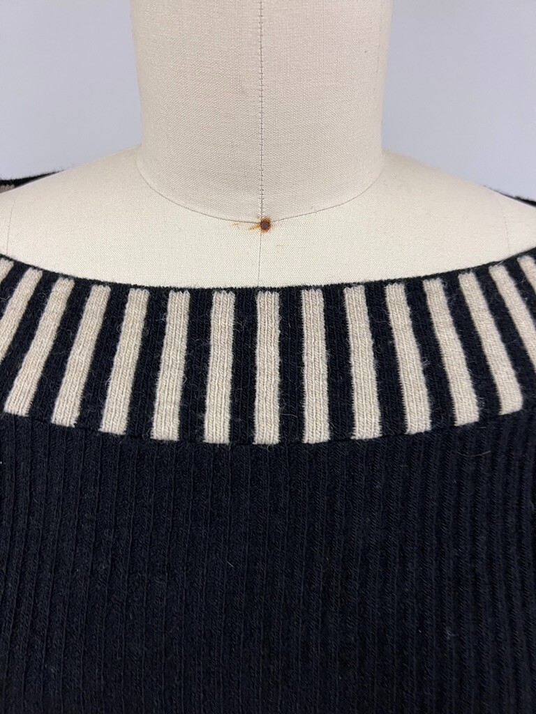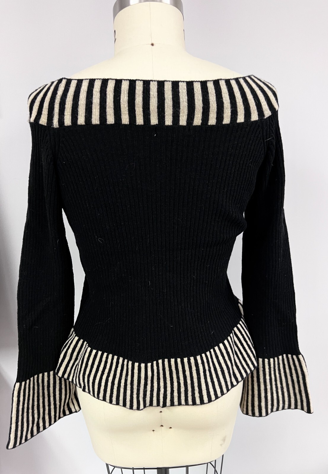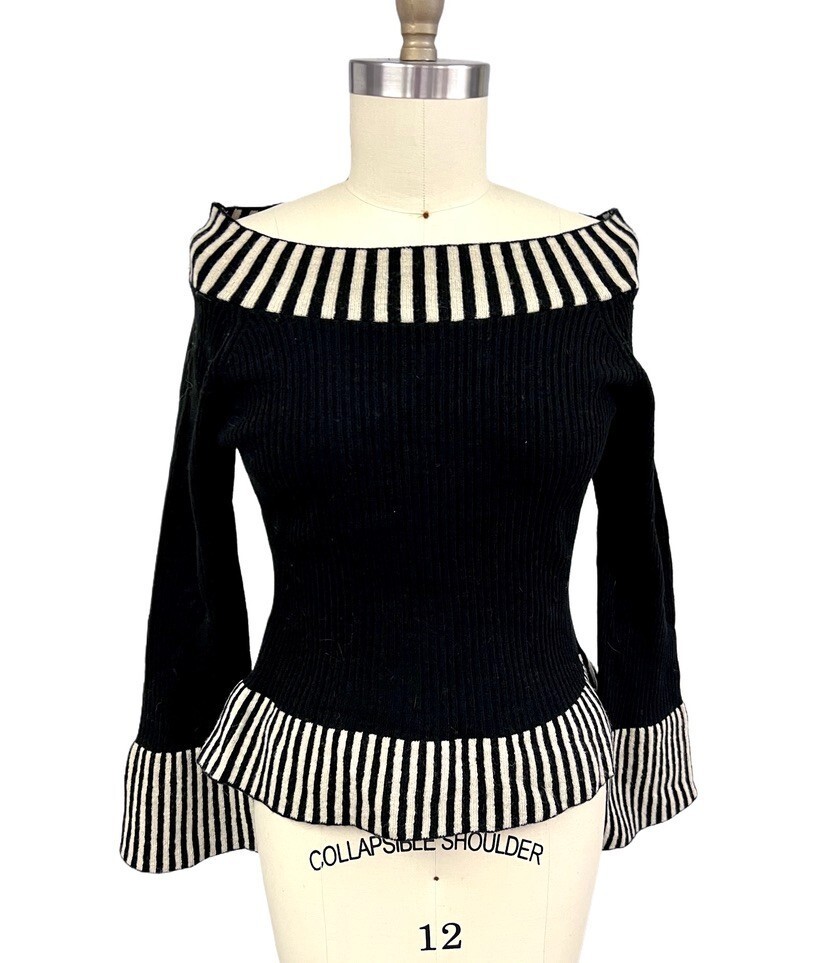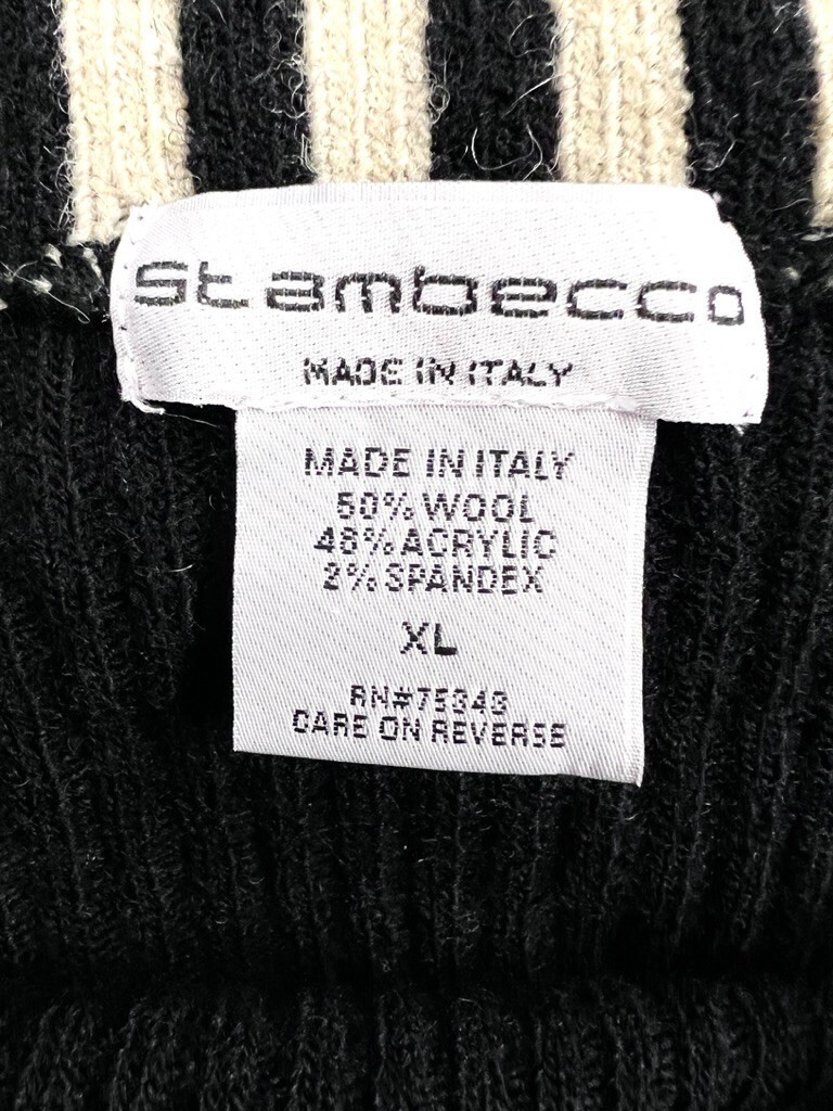 Womens St. Ambecco ribbed knit Sweater, Made Italy, Women?s Sz XL, Black Tan with extra ,wide even off the shoulder neckline. The stripes are really striking. Perfect condition.
