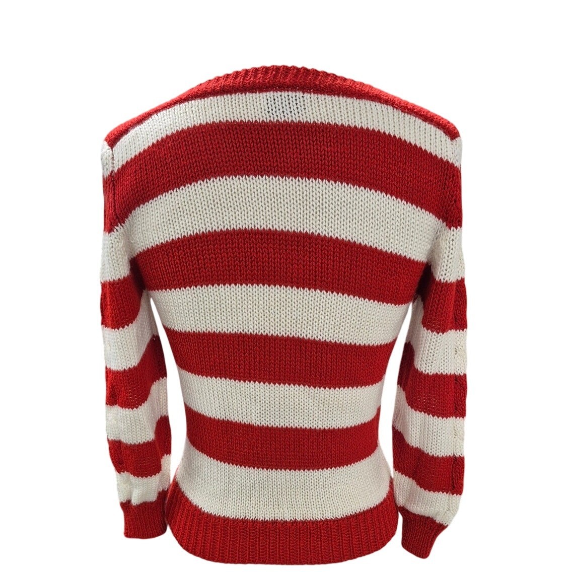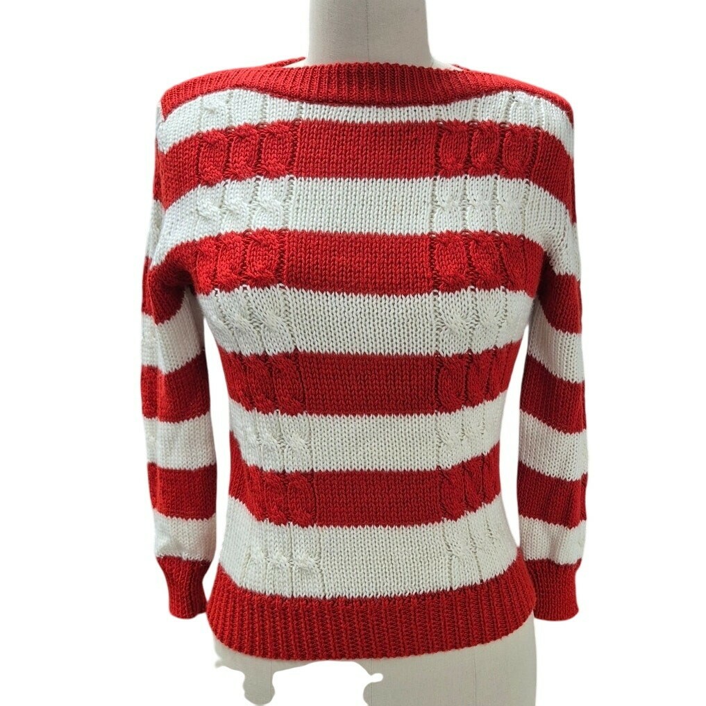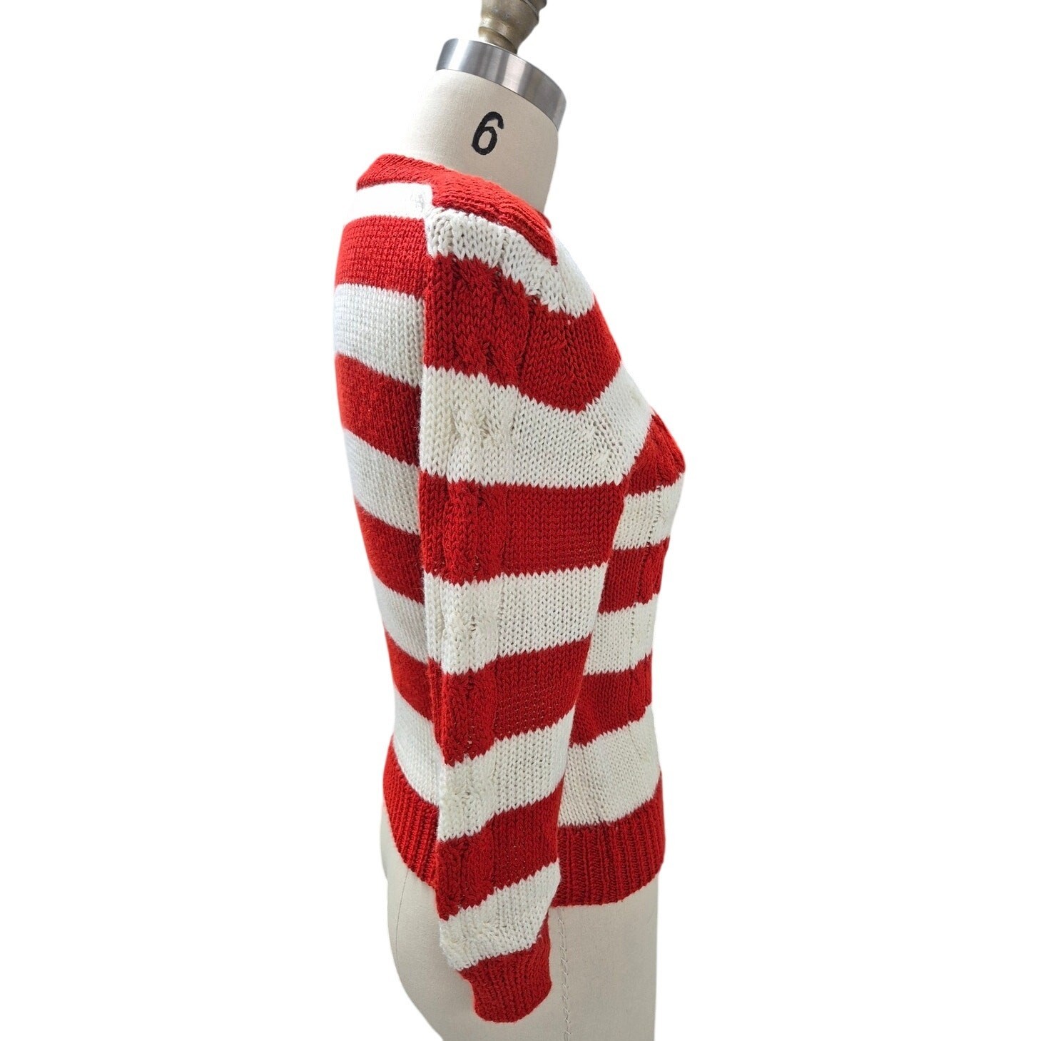 Vtg 80s Celebration 100% Acrylic Cable Knit Sweater Red/White Stripes Sz S