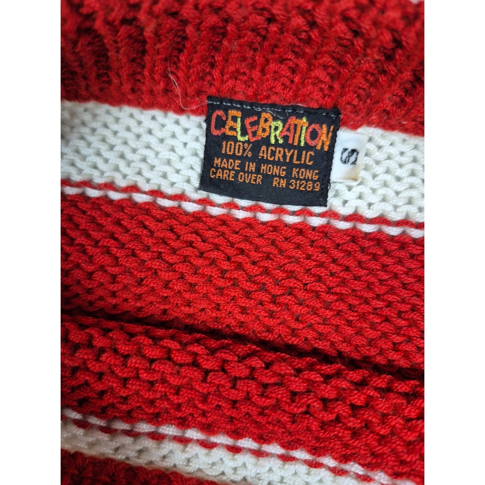 Fun Vtg 80s Celebration 100% Acrylic Cable Knit Sweater Red/White Stripes Sz S- ribbed knit waistband and cuffs. In excellent condition. Made in Hong Kong.