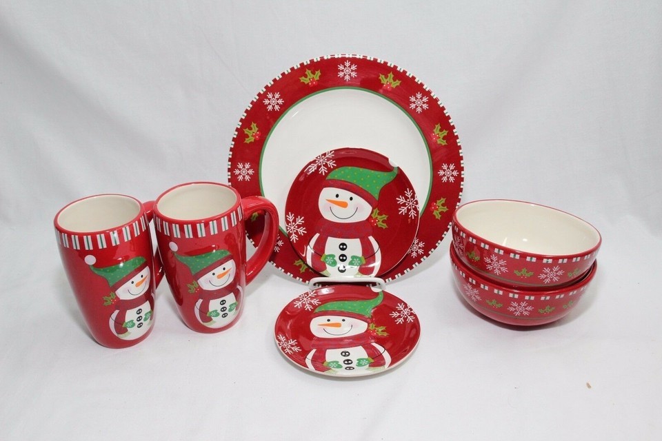 Snowman Christmas Plates Bowls Mugs Set of 7 Living Quarters