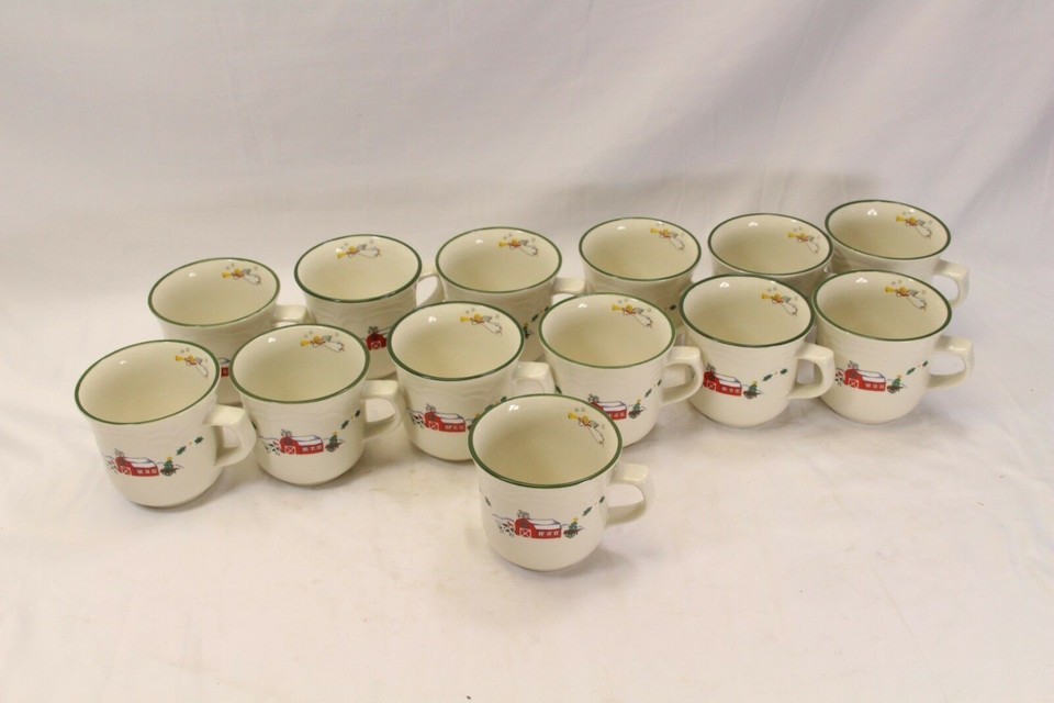 Pfaltzgraff Snow Village Cups Christmas Lot of 13 Xmas