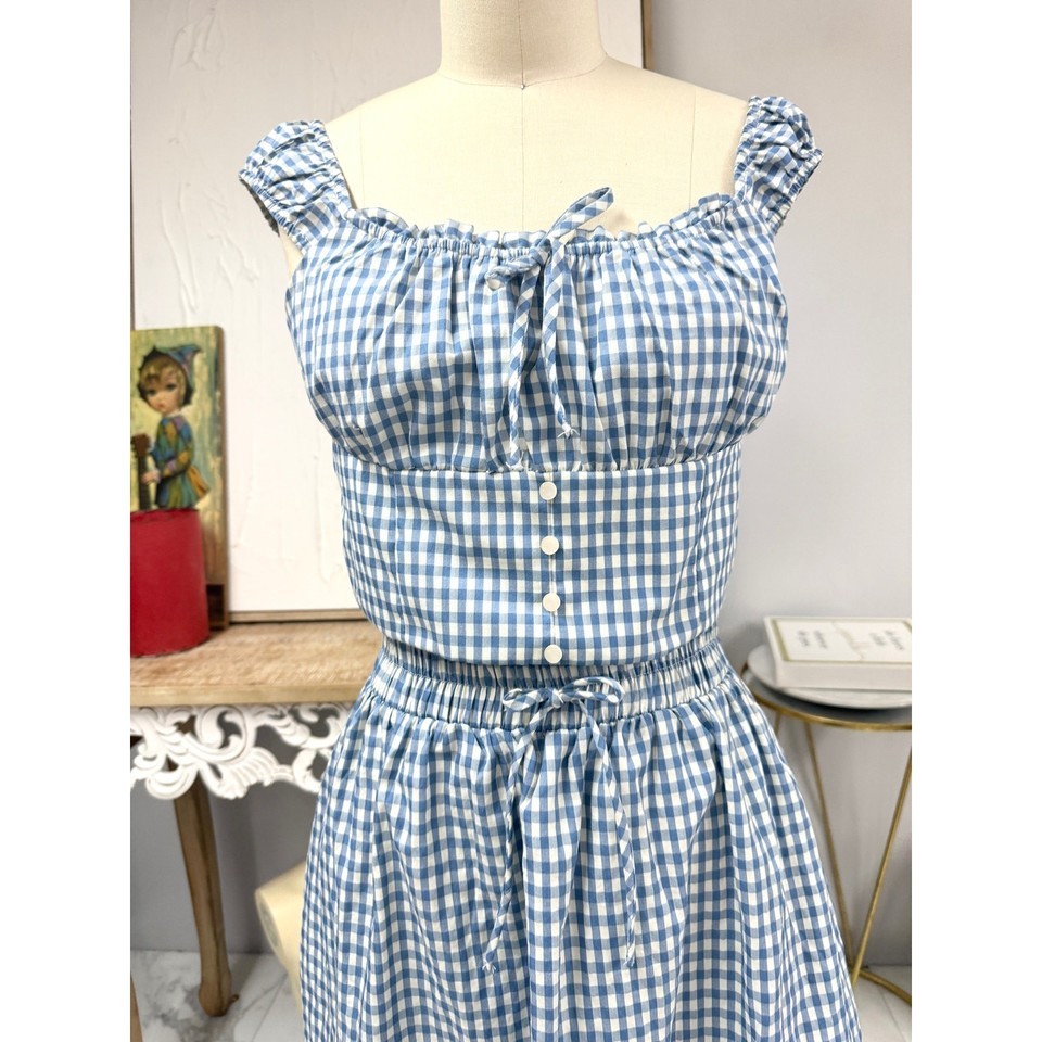 NWT Monteau Los Angeles 2 Piece Blue Gingham Cottagecore Picnic Co Ord Set Sz L