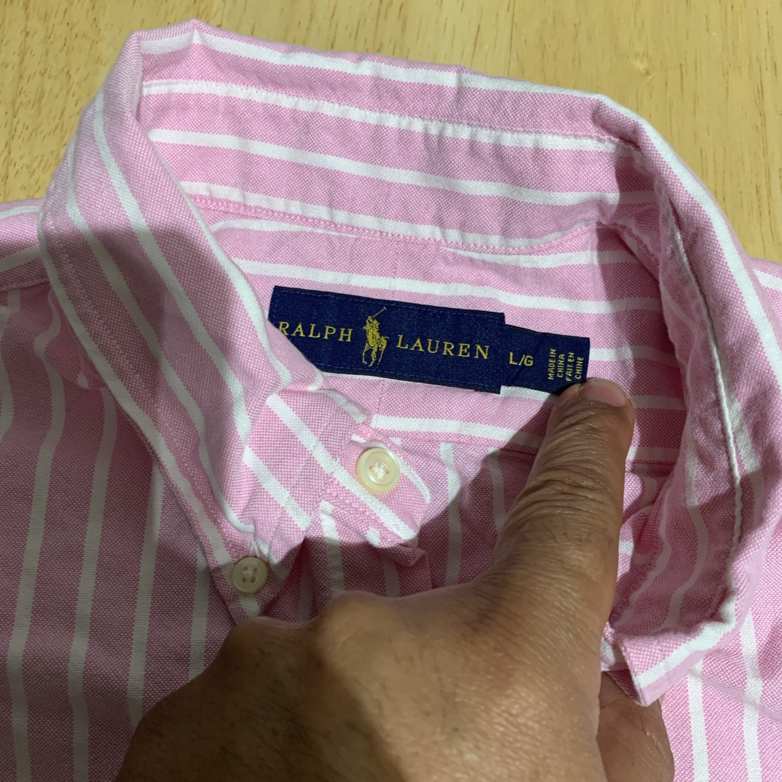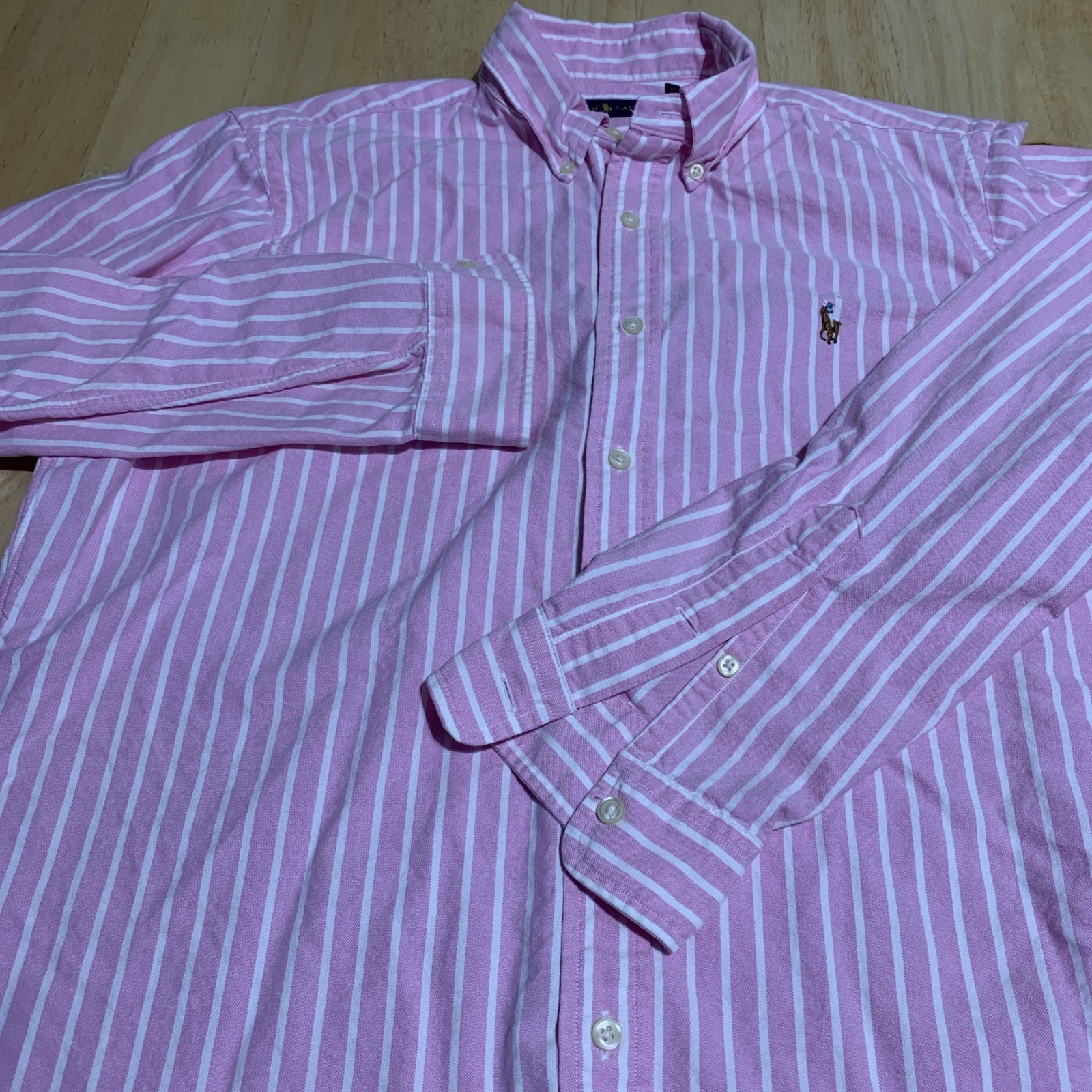 Ralph Lauren Polo Button up Checked Mens Shirt Size Large Pink and White
