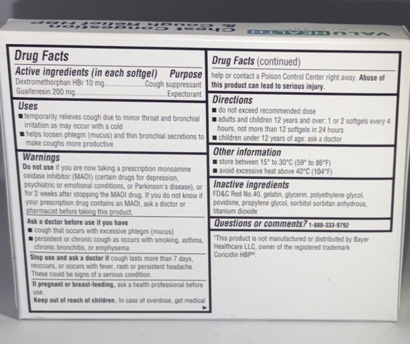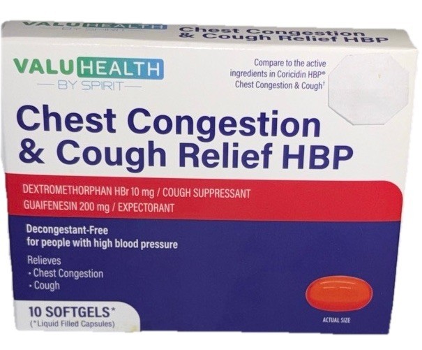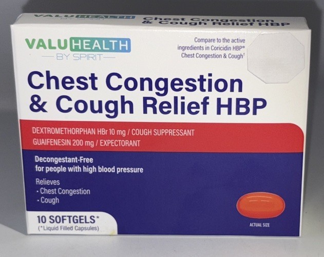 ValuHealth Chest Congestion & Cough Relief HBP- 10 Softgels-NEW-SHIPS N 24 HOURS