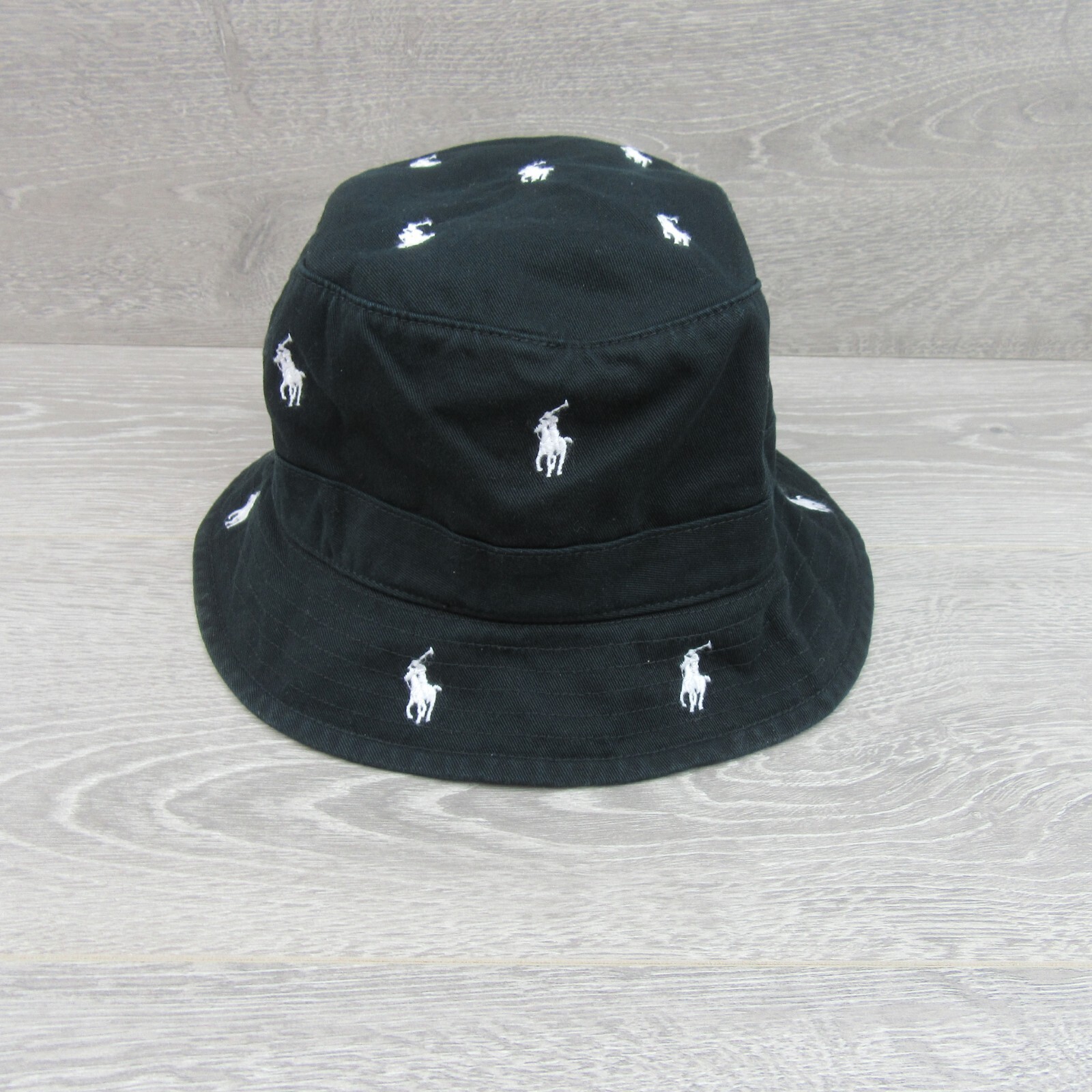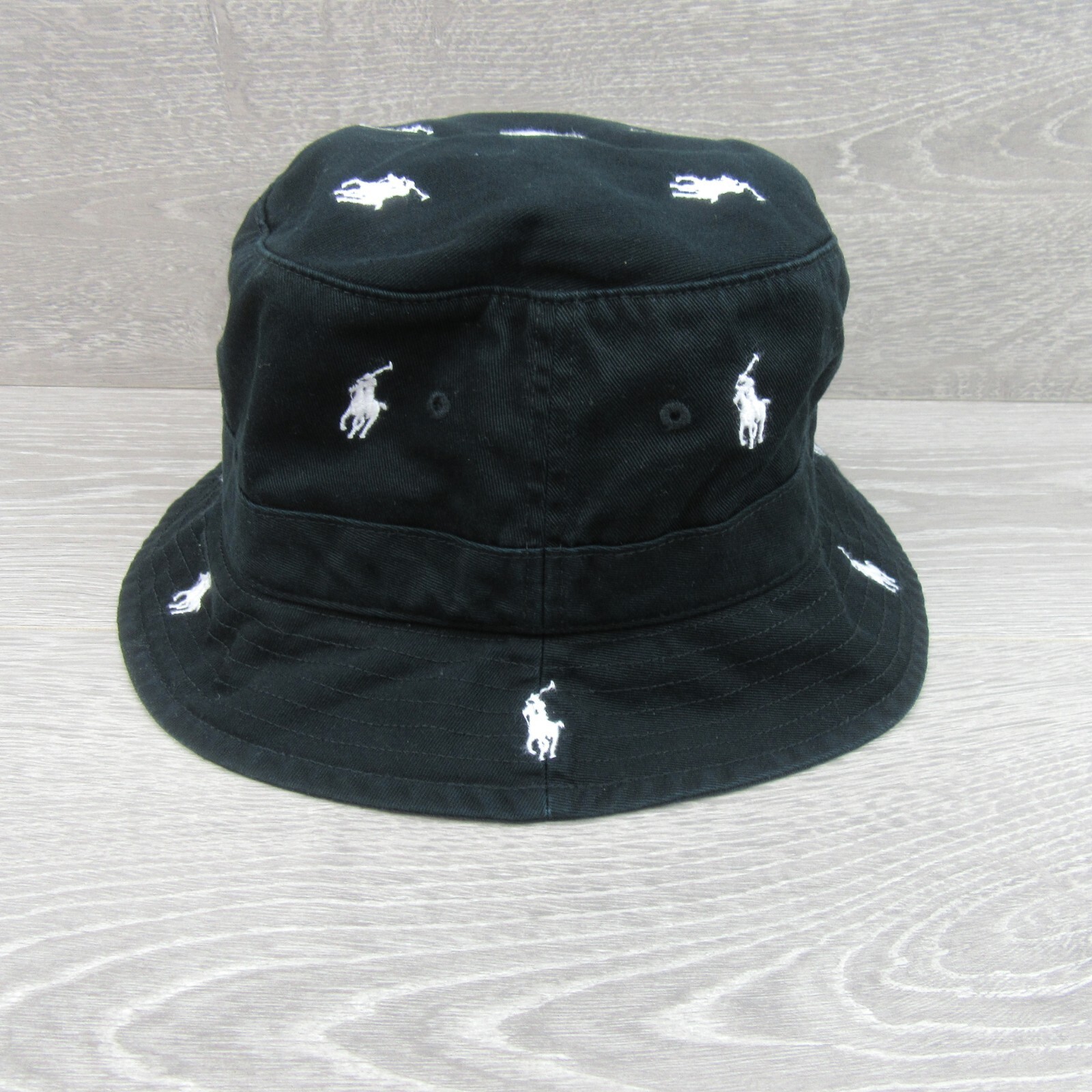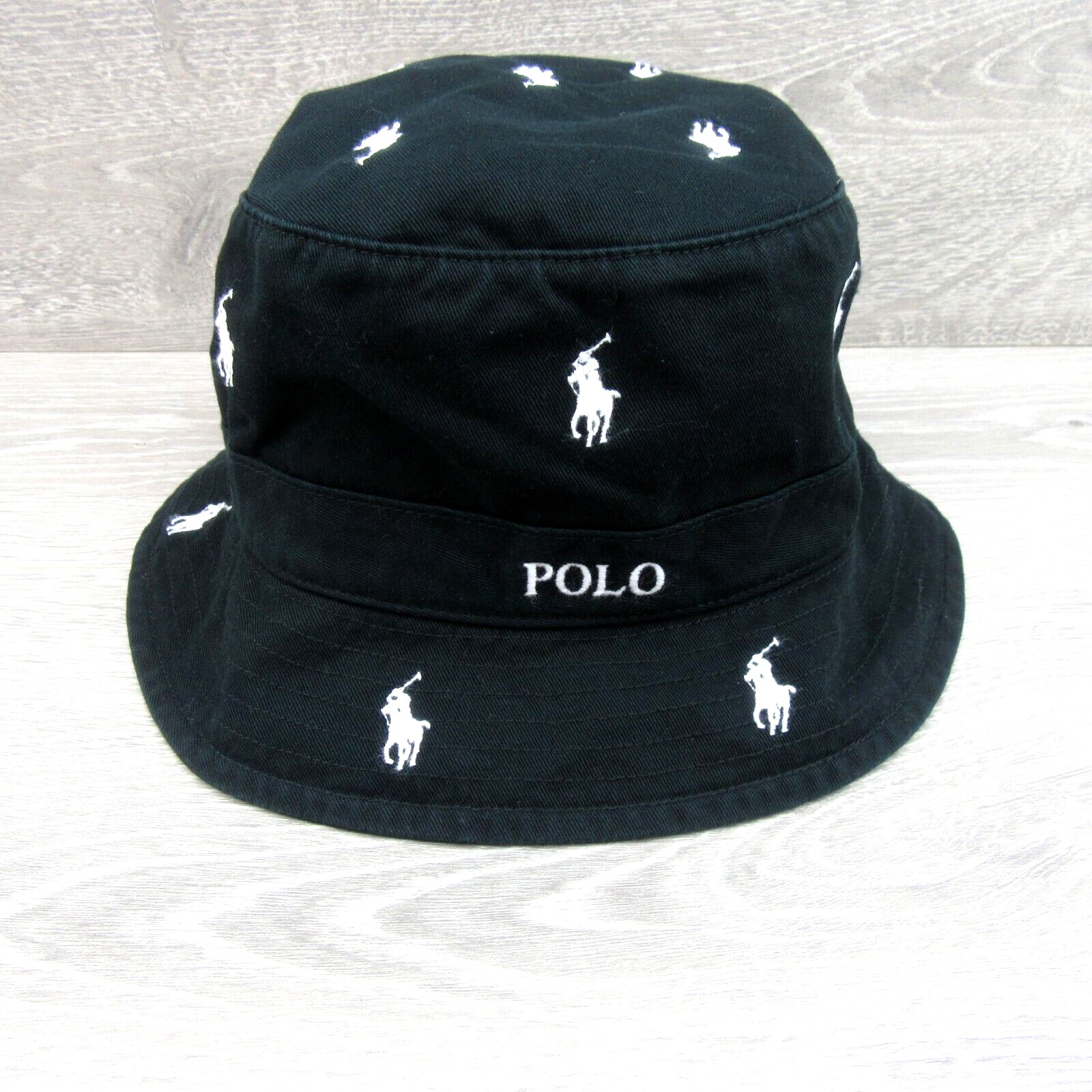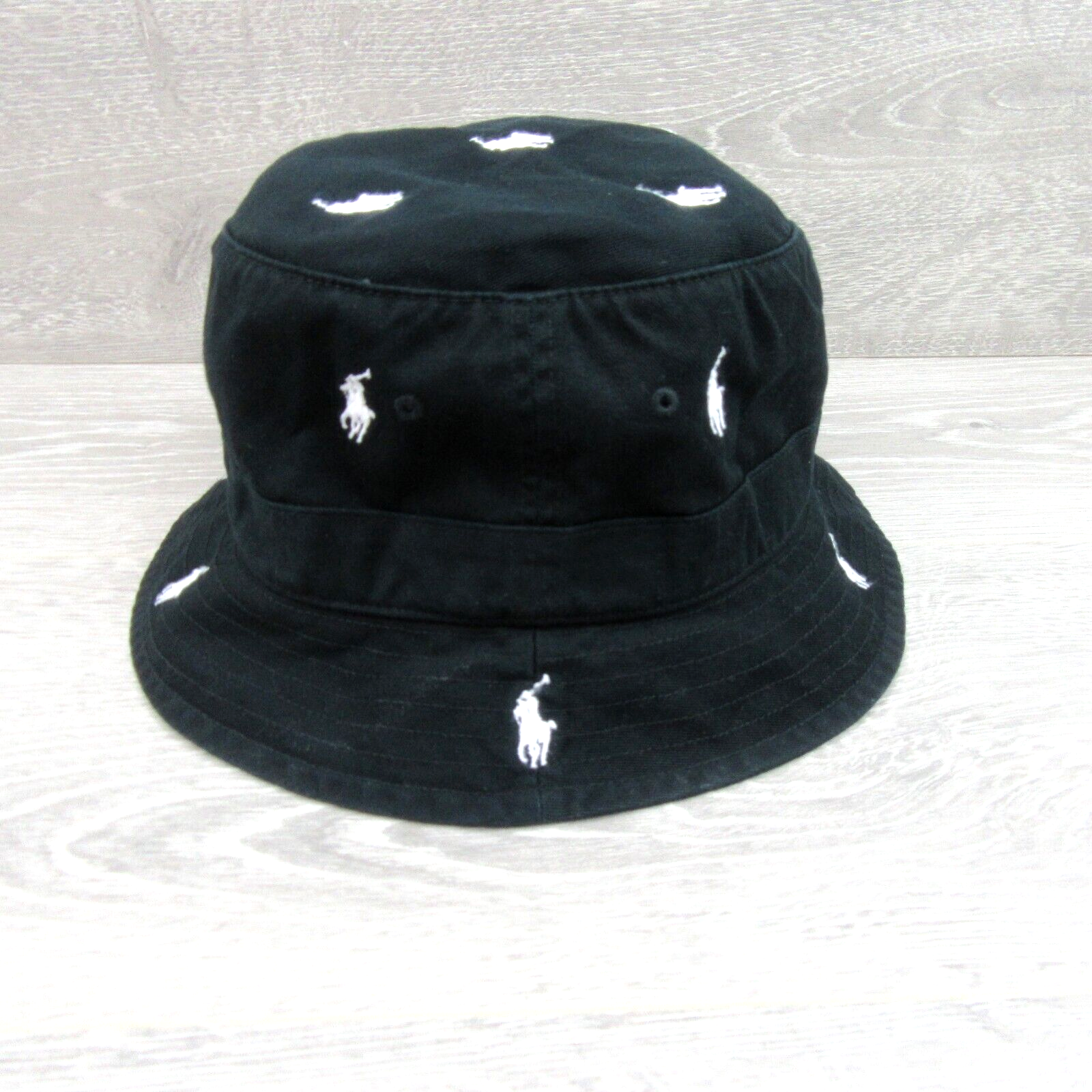 Polo Ralph Lauren Embroidered Pony Bucket Hat Adult Size S/M Black White NEW