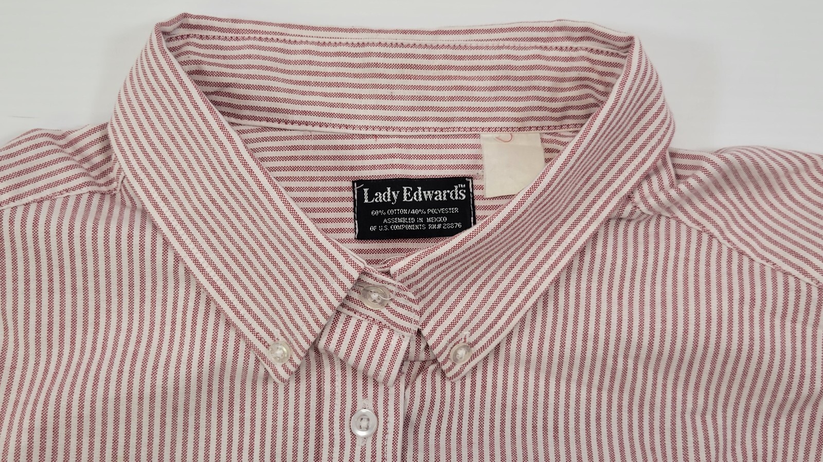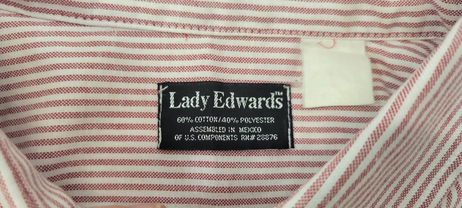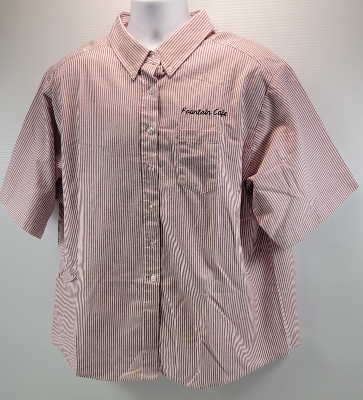 Lady Edwards Woman Food Service Striped Button Down Shirt Fountain Cafe Diner XL