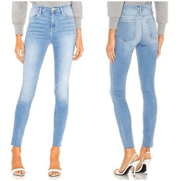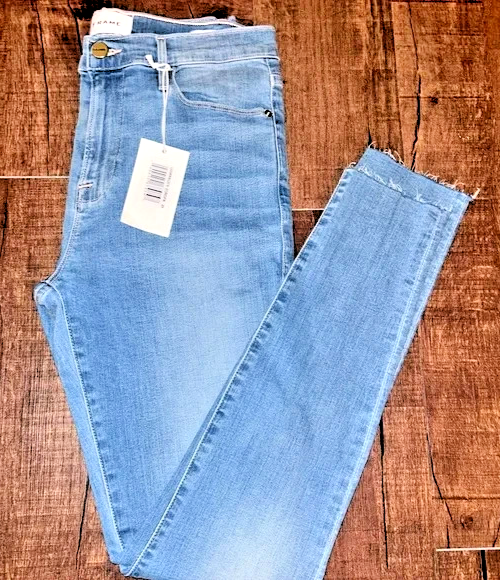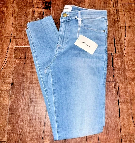$225 FRAME BLUE EUROPA LE HIGH SKINNY RAW HEM JEANS 29 NWT