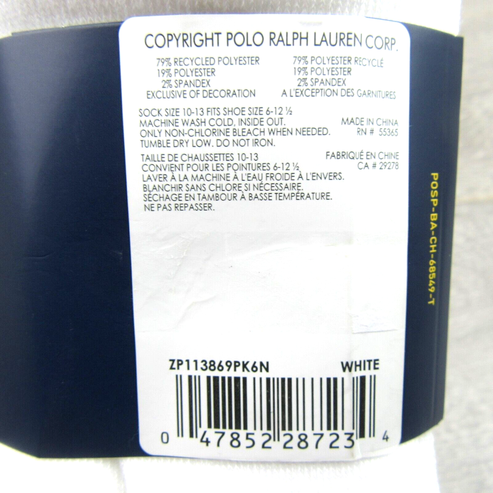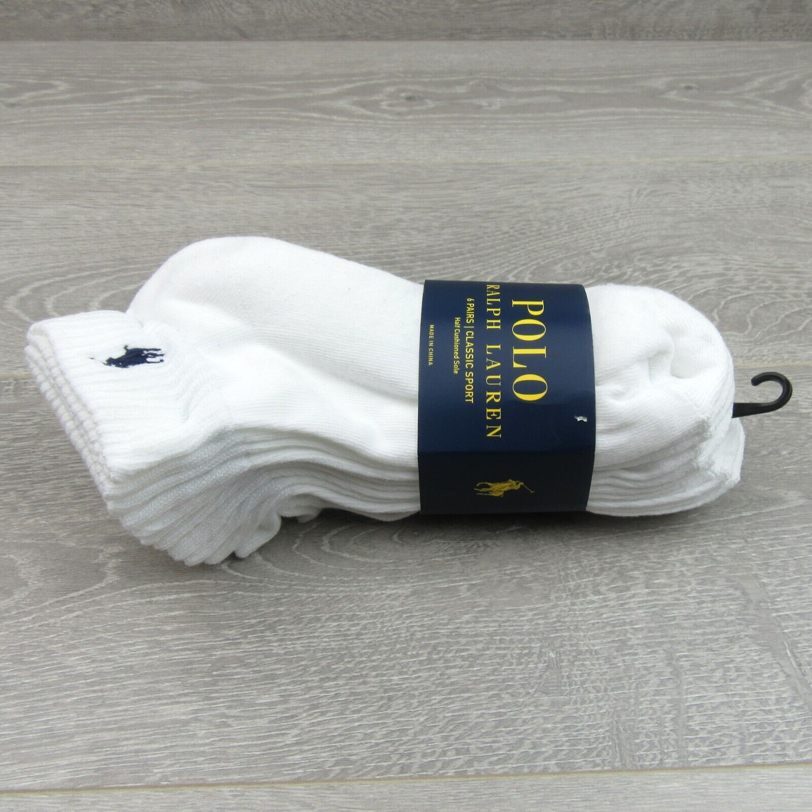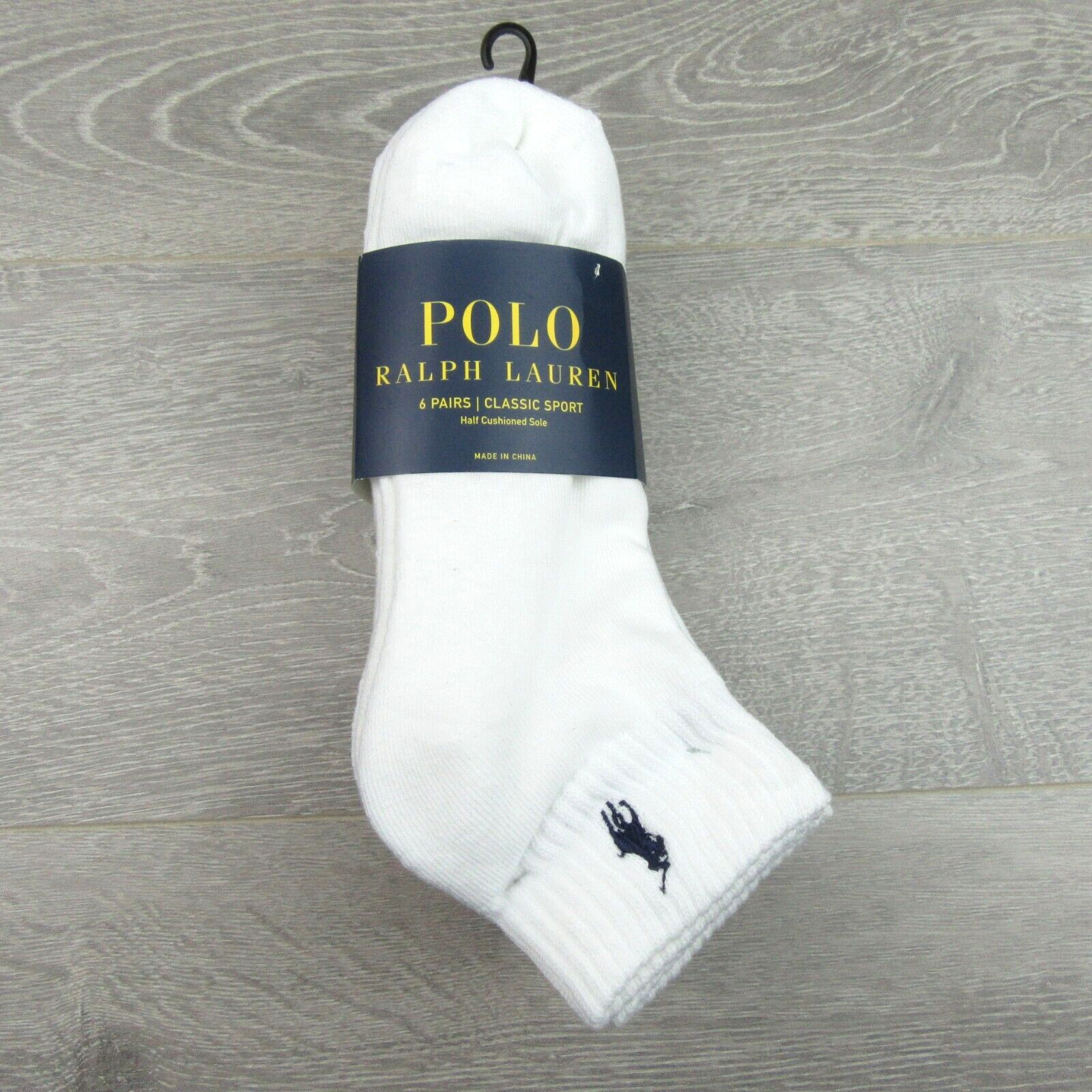 Polo Ralph Lauren Classic Sport Low Cut Socks Men's Size 6-13 White (6-Pack) NEW