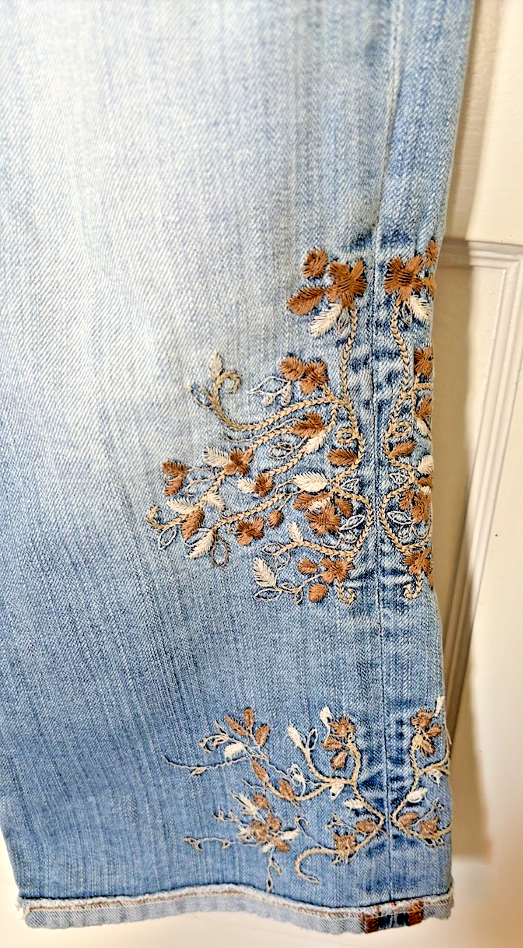 Coldwater Creek Women’s Light Blue Embroidered Capri Jeans Size 12