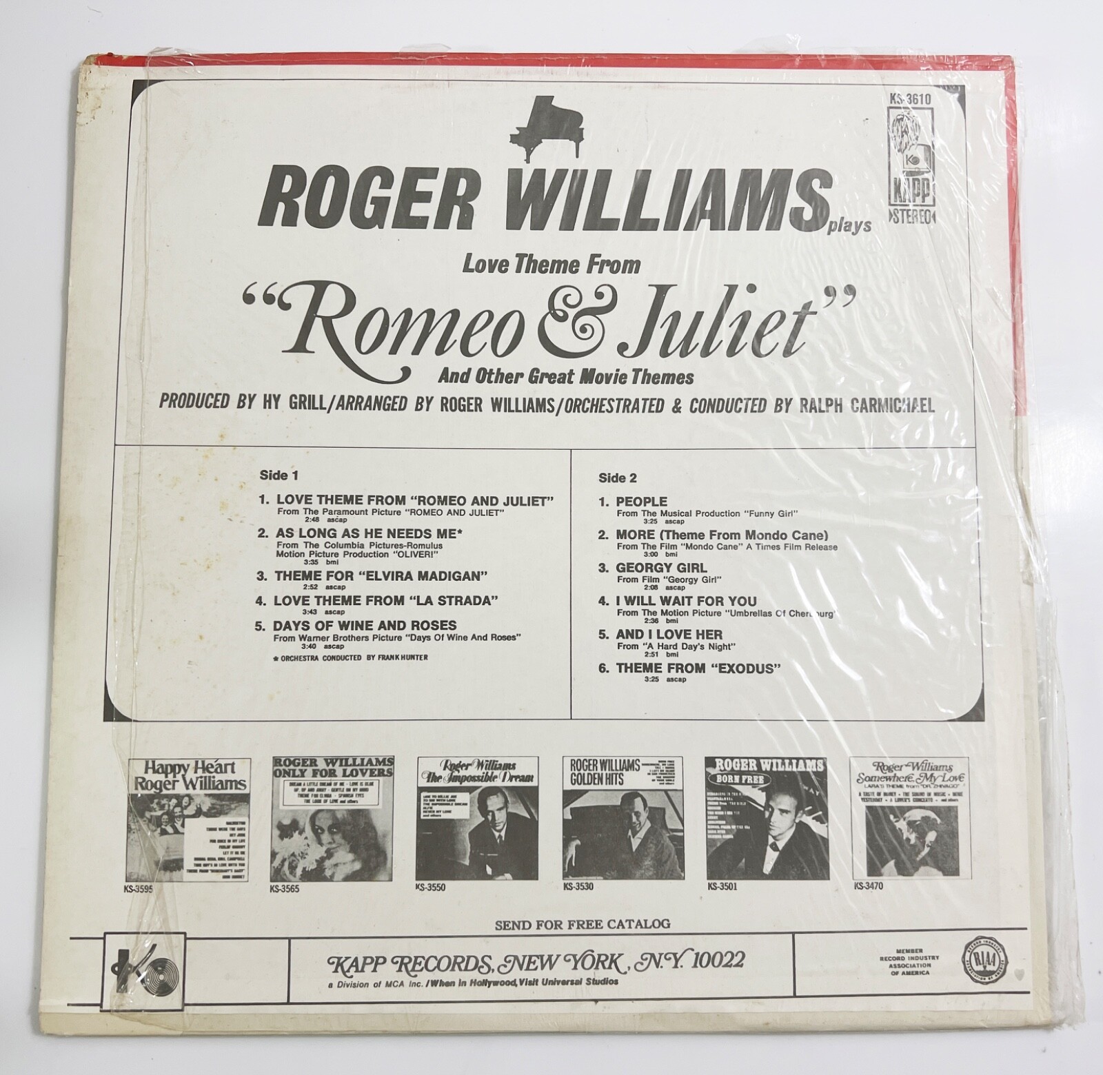 33 RPM LP Record Roger Williams Romeo & Juliet Kapp Records KS-3610