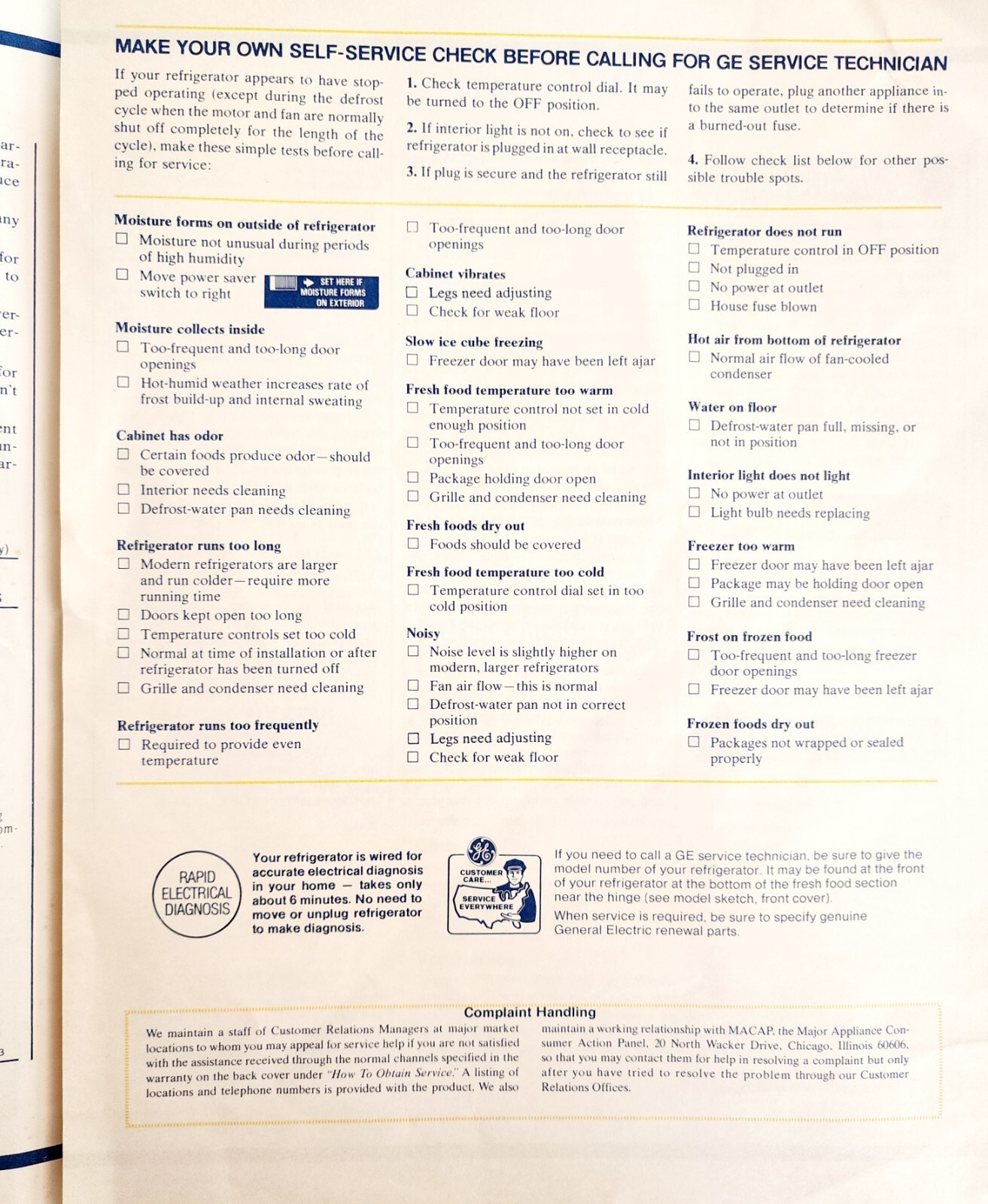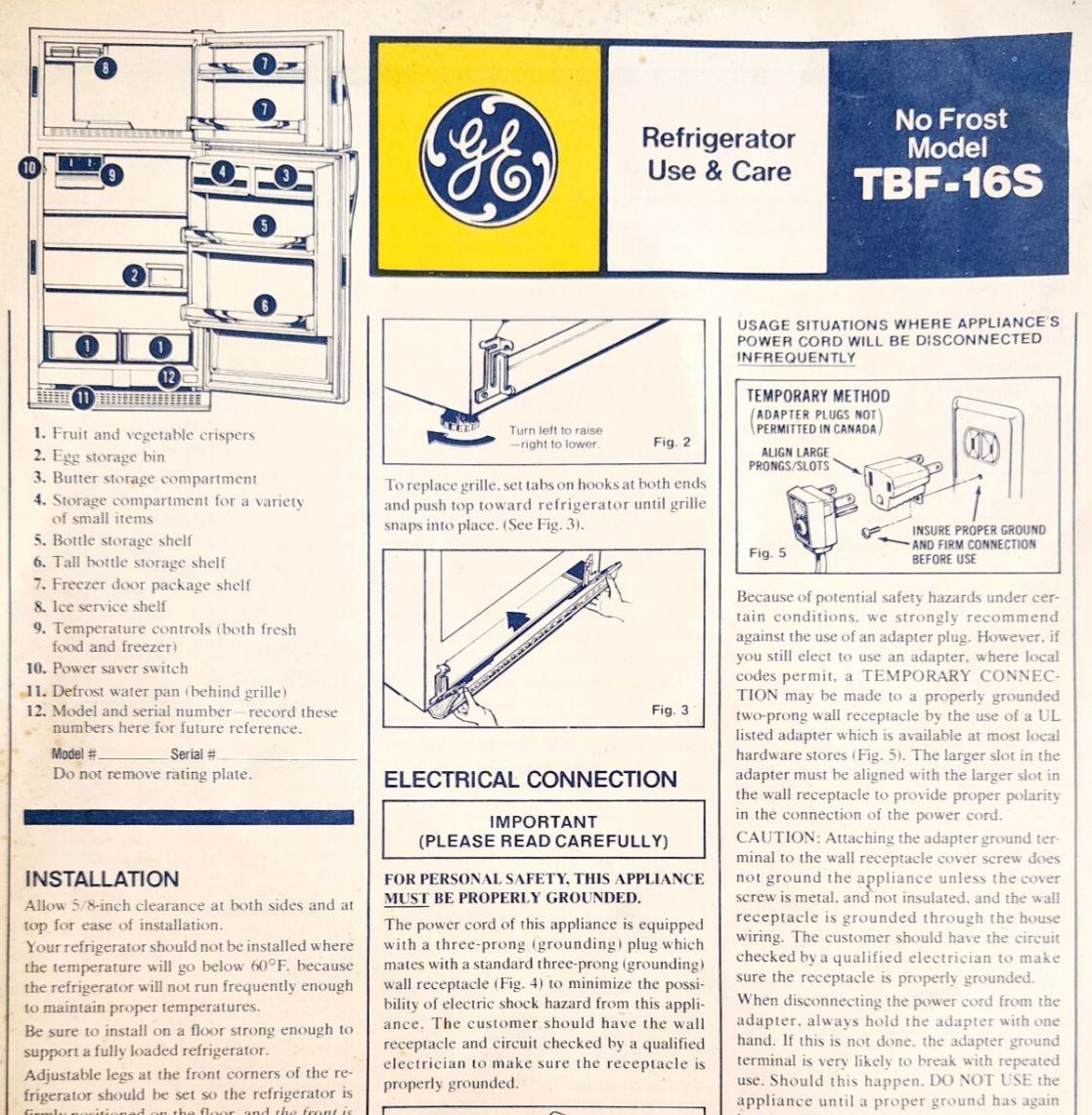 1970s General Electric TBF-16S Refrigerator Use & Care Manual No Frost DWUU9