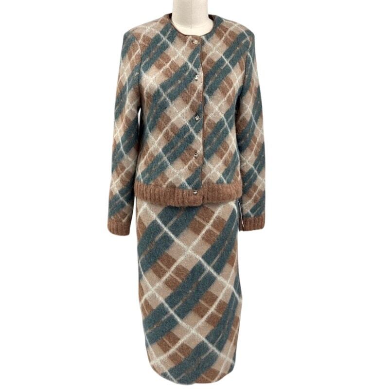 Marc Cain NWT Argyle Knit Sweater Skirt Suit Set Size N3 US 8–10 Wool Alpaca