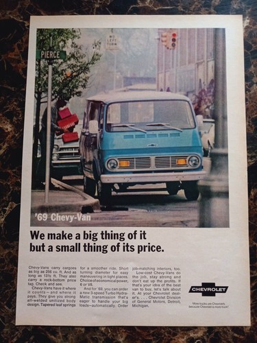 Chevy Van Cargo Chevrolet Blue 1968 Vintage Print Ad