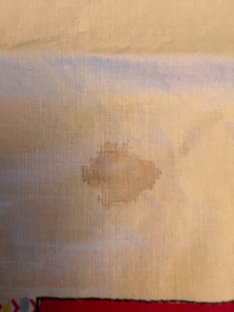 Vintage MCM tea towel measures 15x28, has great colors, has typical faint yellowing from age no holes, has several cloudy yellow spots that may or may not treat out, please see photos.