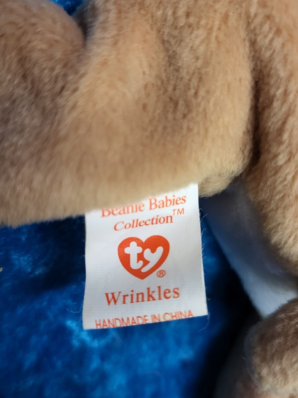 Rare Retired 1996 Ty Beanie Baby "Wrinkles" w/ PVC pellets/Tag Errors: See Pics