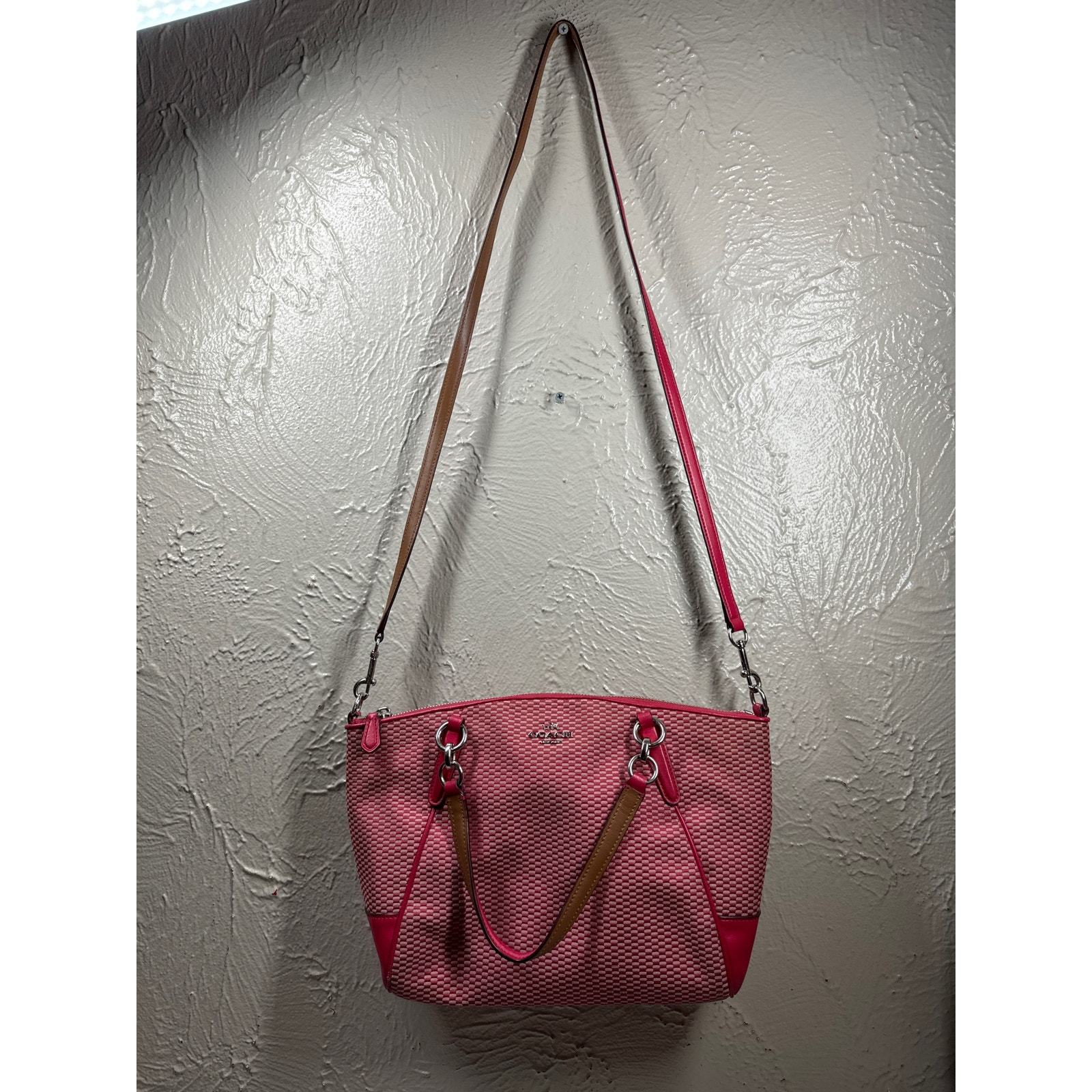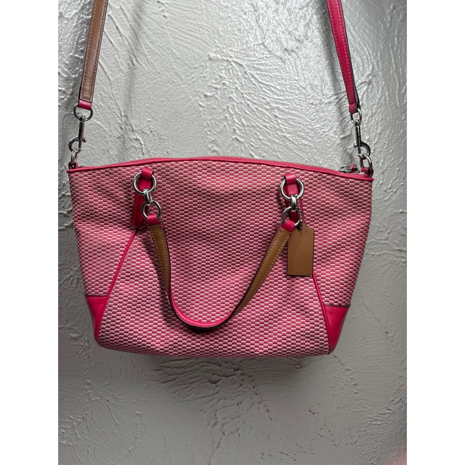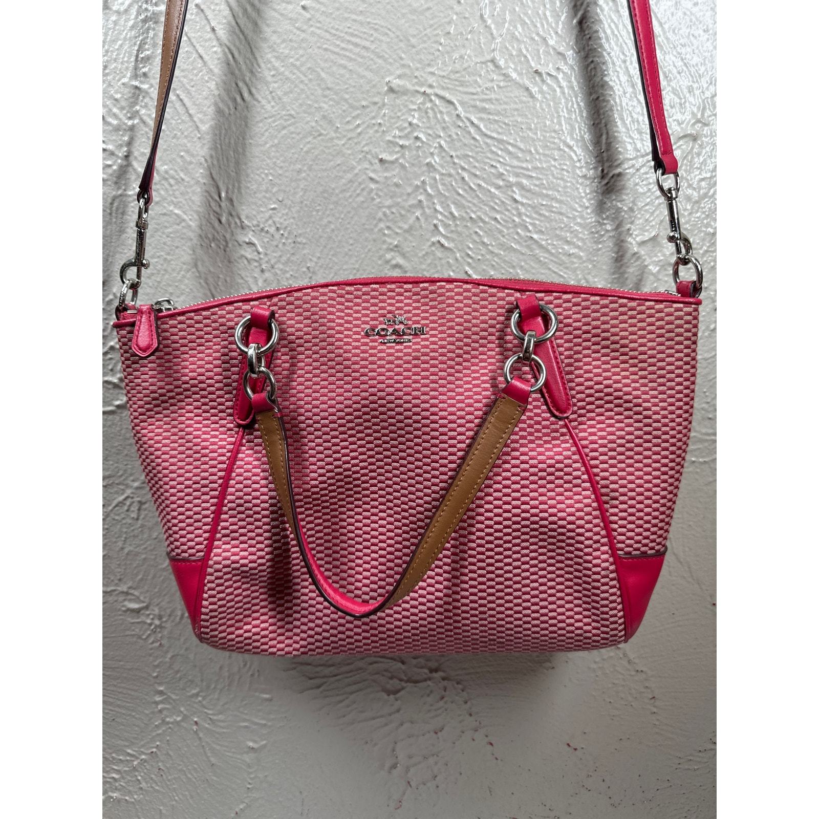 Coach Medium Kelsey Pink Red Jacquard Satchel Crossbody Bag F57244