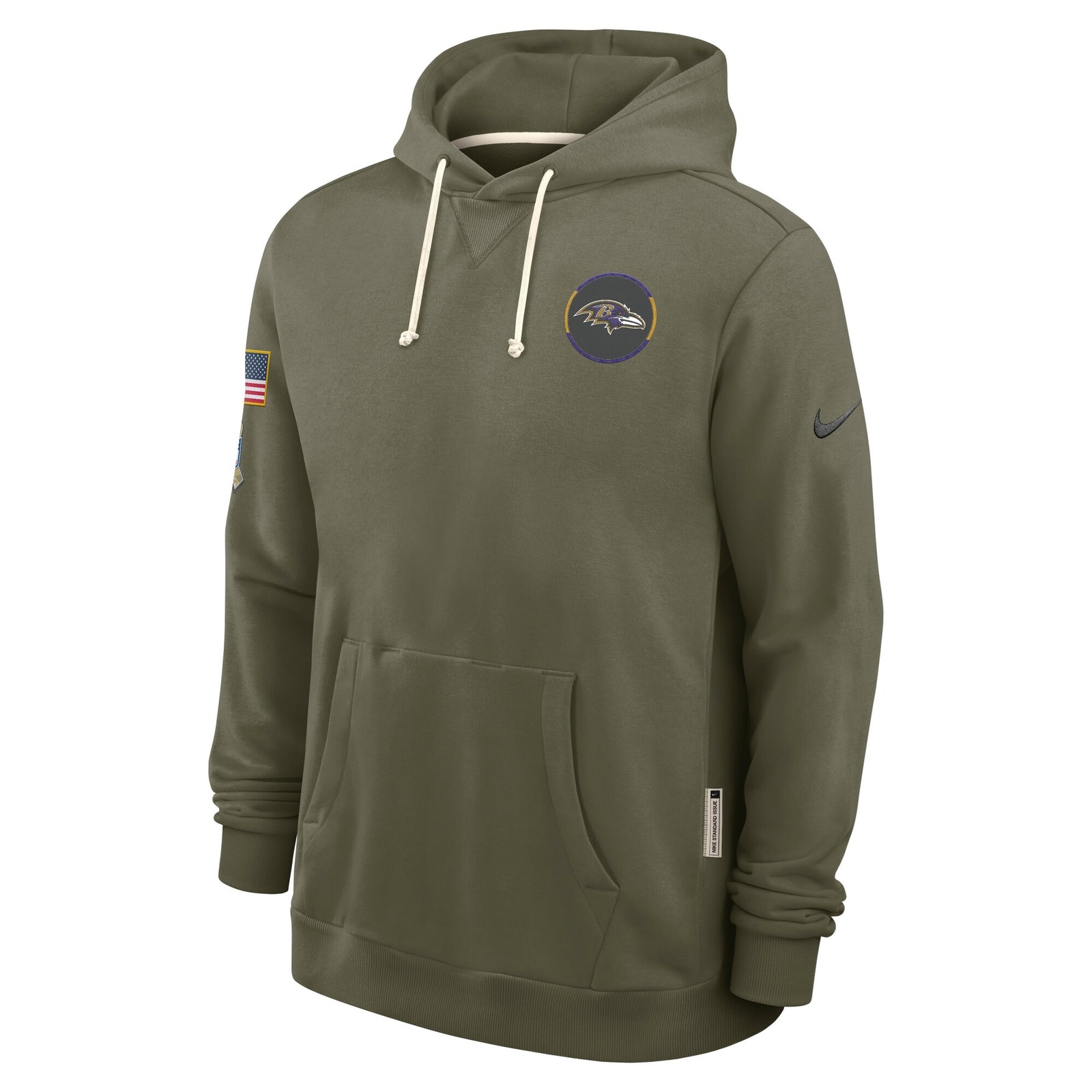 Mens Olive Ravens 2025 Salute to Service Sideline Pullover Hoodie - Baltimore