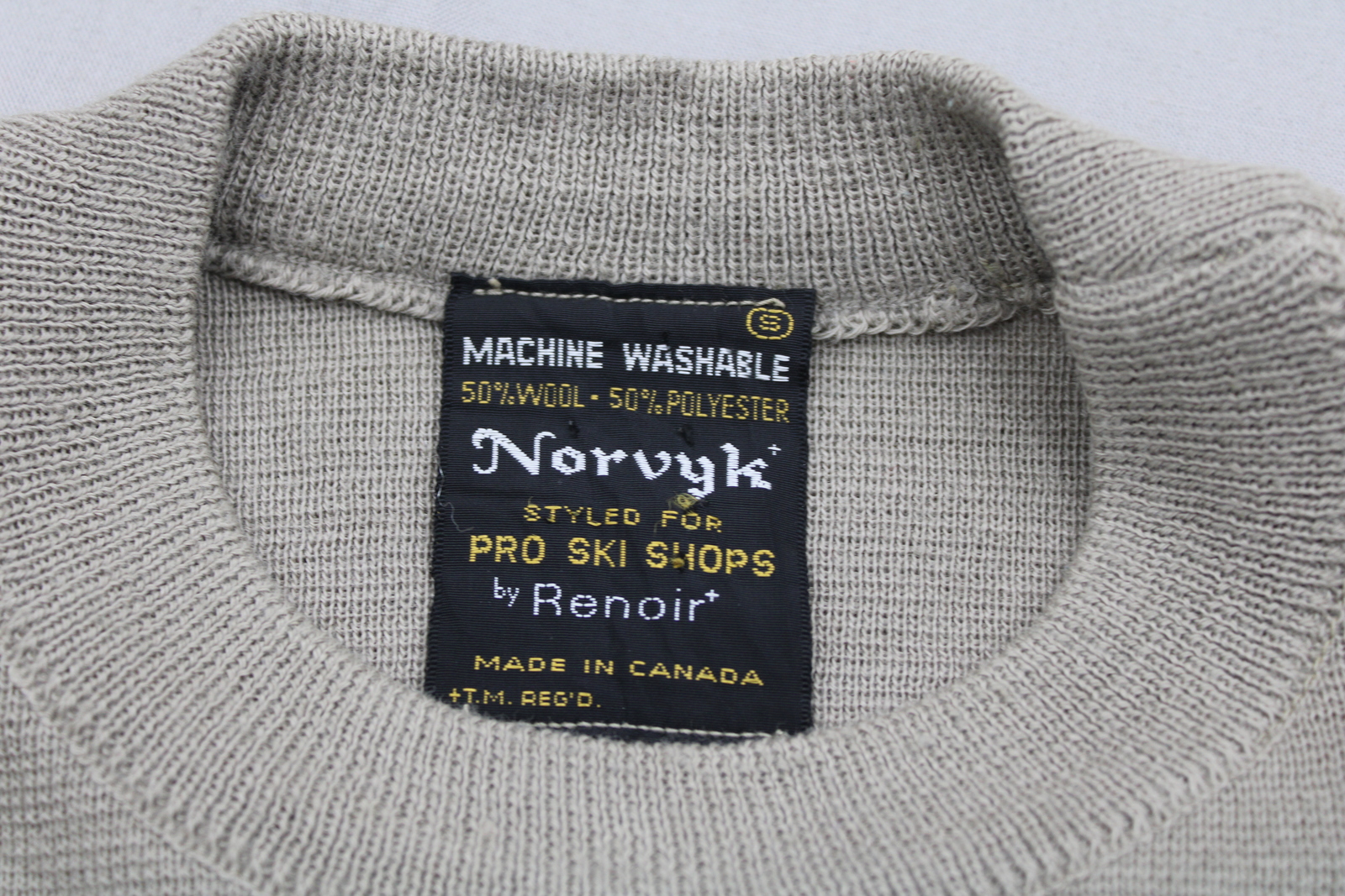 Up for sale is a vintage Ski Sweater by Renoir. It is a 3 stripe sweater with a tan top, beige stripes and a brown bottom. What a great vintage sweater do not miss out on it.