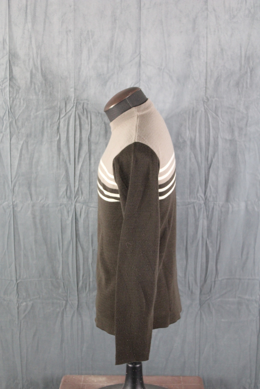 Vintage Sweater - 3 Stipe Brown by Renoir Wool Blend - Men's Small