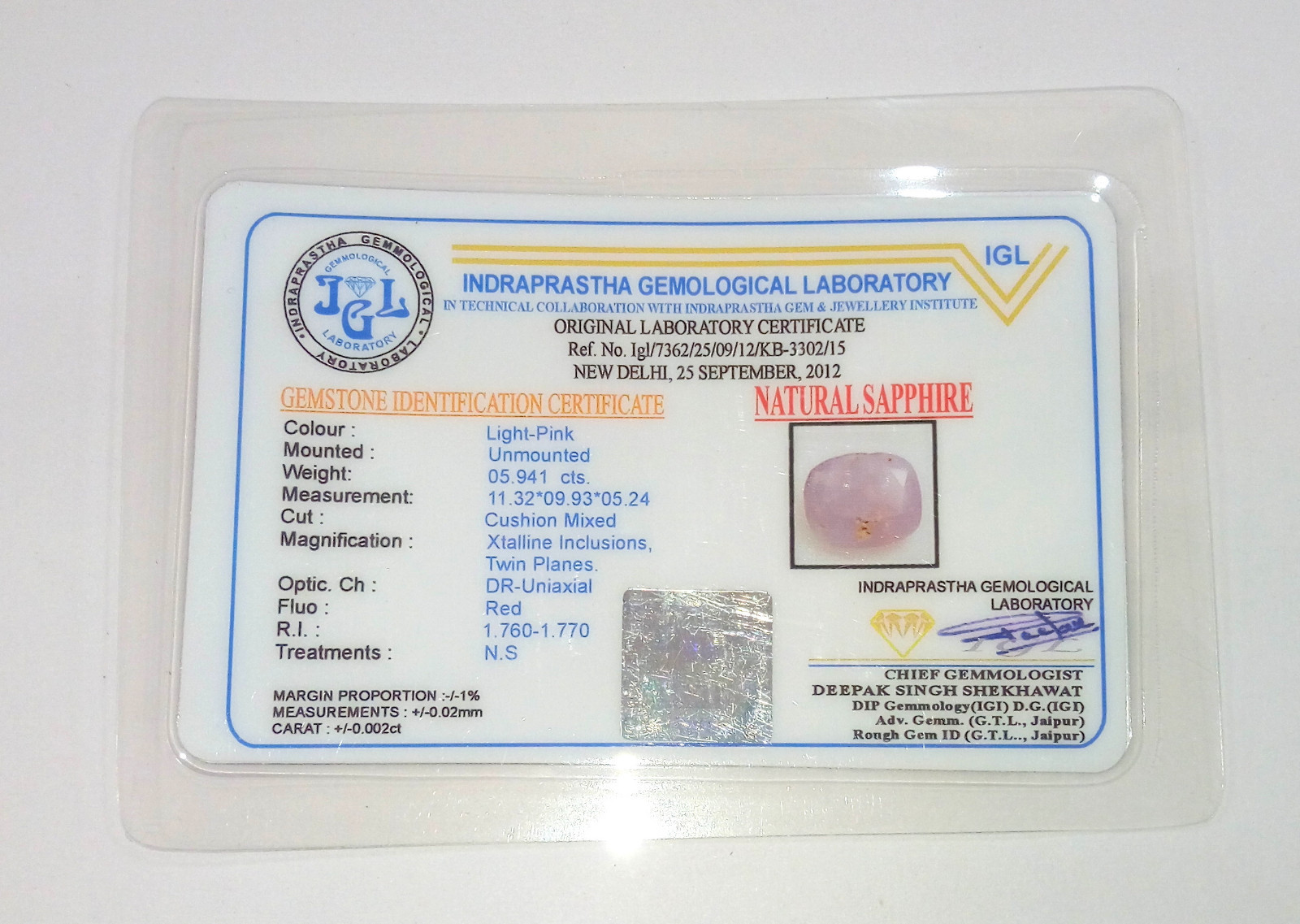 Attachment : Lab Test Report of Authencity From IGL ( Govt Auth Gem Testing Lab Of Gemstones) - as shown in last picture.