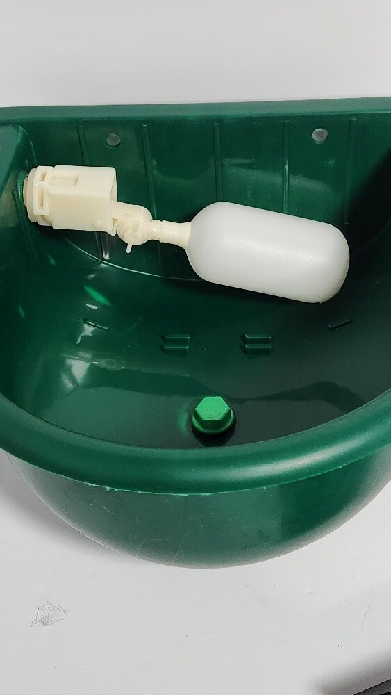 The Automatic 1.2 Gallon Water Trough Cow Horse Water Bowl with Float Valve is a durable and practical pet waterer designed for adult animals. Made of green plastic, this bowl features a float valve for easy flow control, ensuring that your pets have access to clean water at all times. With its 1 bowl design and automatic functionality, this water trough is a convenient and efficient way to provide hydration for your furry friends. Perfect for dog owners looking for a reliable and low maintenance solution for keeping their pets hydrated.