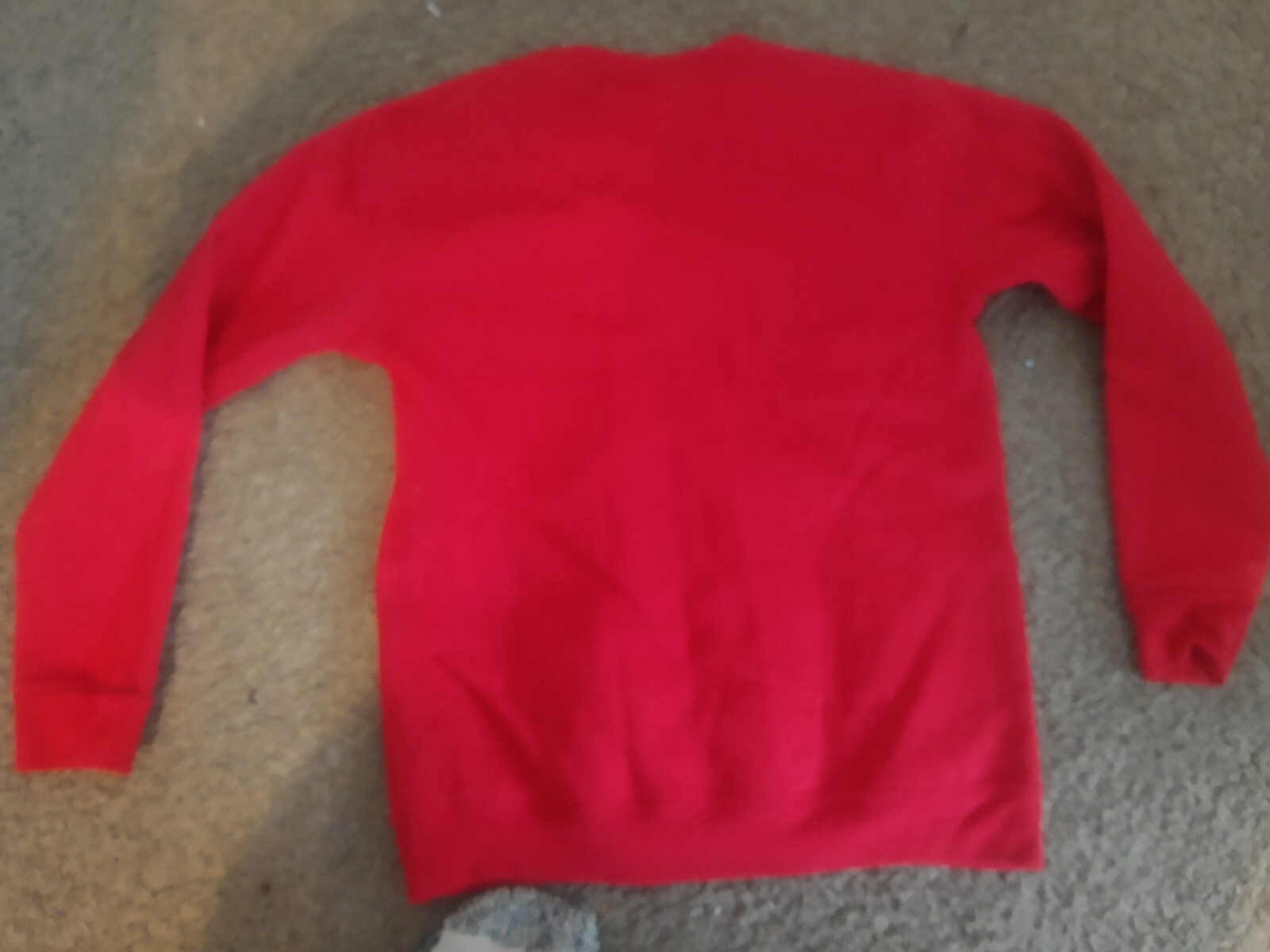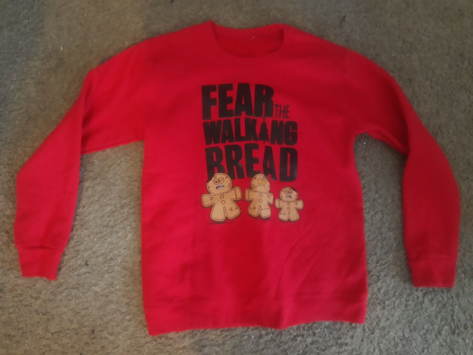Nuovo ragazzo ragazza timore di camminare per il pane al pan di zenzero Spacca Red M 8 - 10 Questo e un grande maglione. Questo e etichettato come ragazzi M (probabilmente funziona più piccolo alla taglia 8). Per favore guarda le dimensioni e vedrai. Nessun marchio su questo. Era nuovo e non mi adattava a me ragazzo CONDIZIONE: eccellente dimensioni: Fine del braccio della manica - 16-17 pollici Top di collare sul fondo - ca. 20-22 pollici attraverso il torace (ascella all'ascella) - 15-16 pollici Nave gratuita - Dai un'occhiata ai miei altri vestiti giovanili !!!!