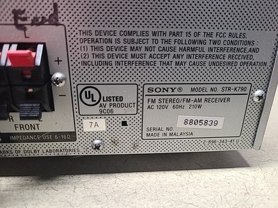 Sony STR-K790 Receiver HiFi Stereo Vintage 5.1 Channel Surround Sound Radio AVR
