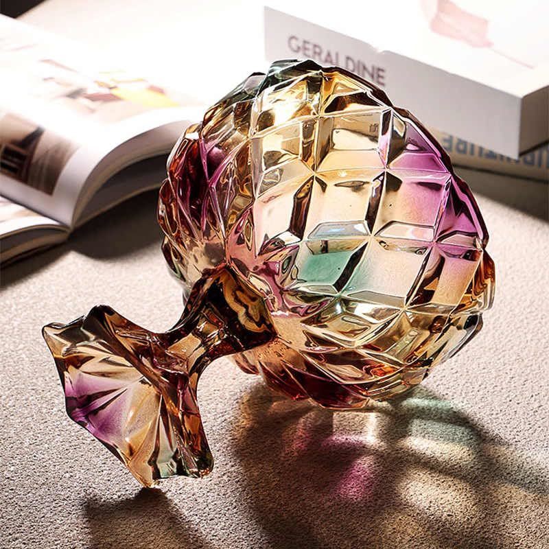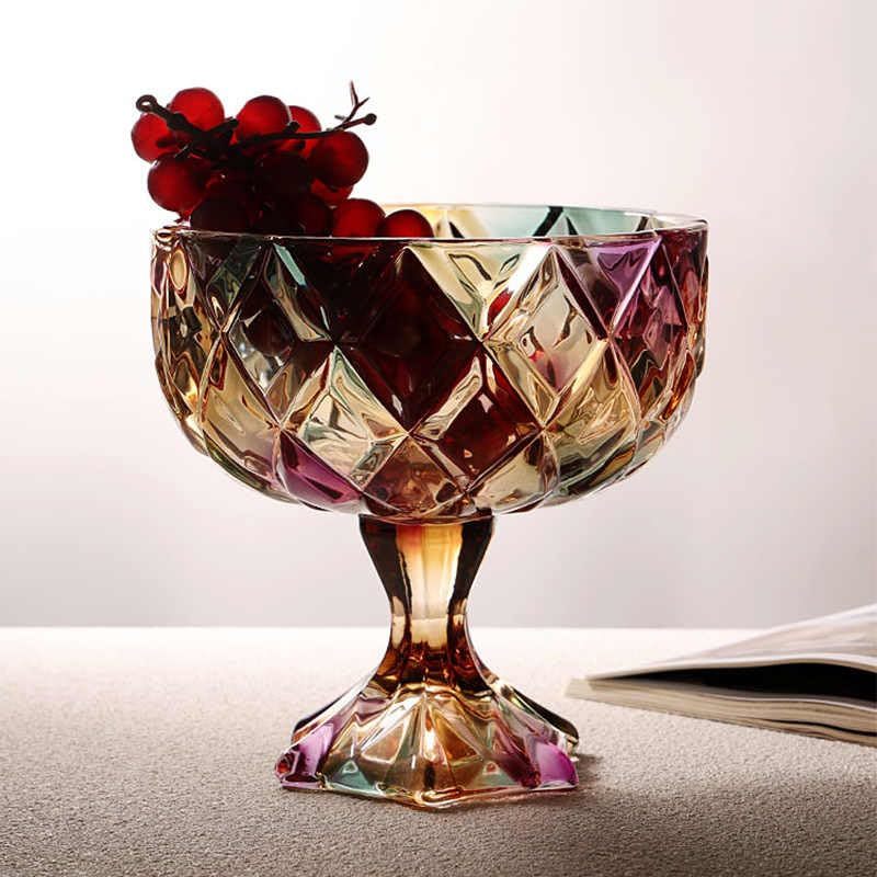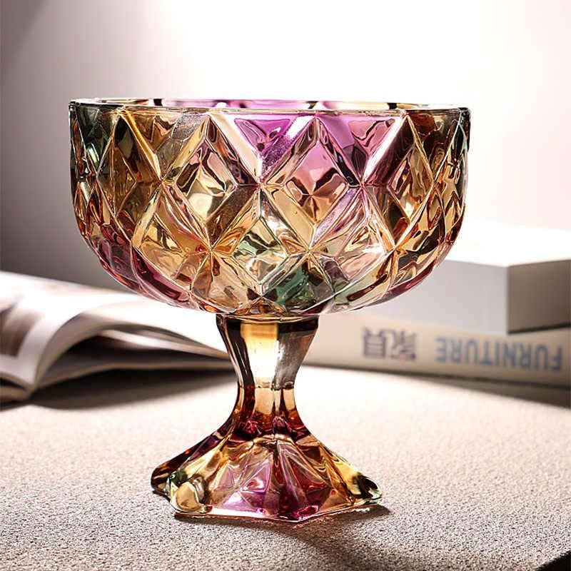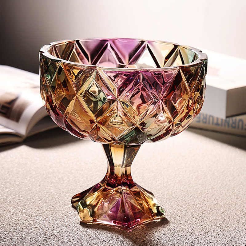 interoknack Creative Crystal Glass Pedestal Fruit Bowl, Diamond-Cut Rainbow Stem
