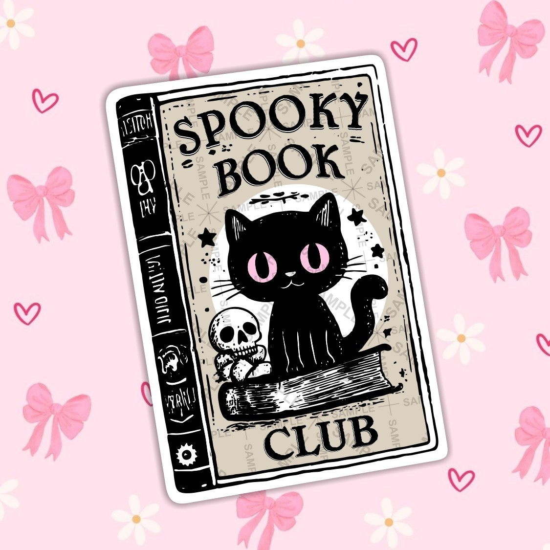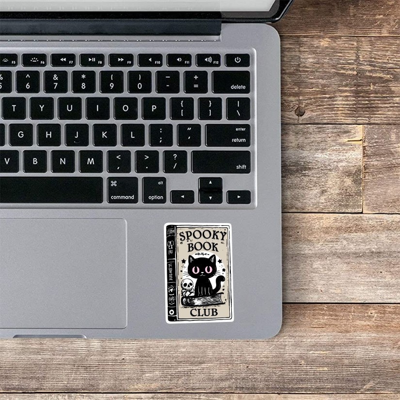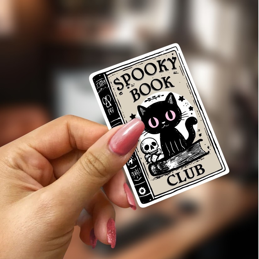 Spooky Book Club Sticker: Black Cat Halloween Vinyl Sticker. Different Sizes