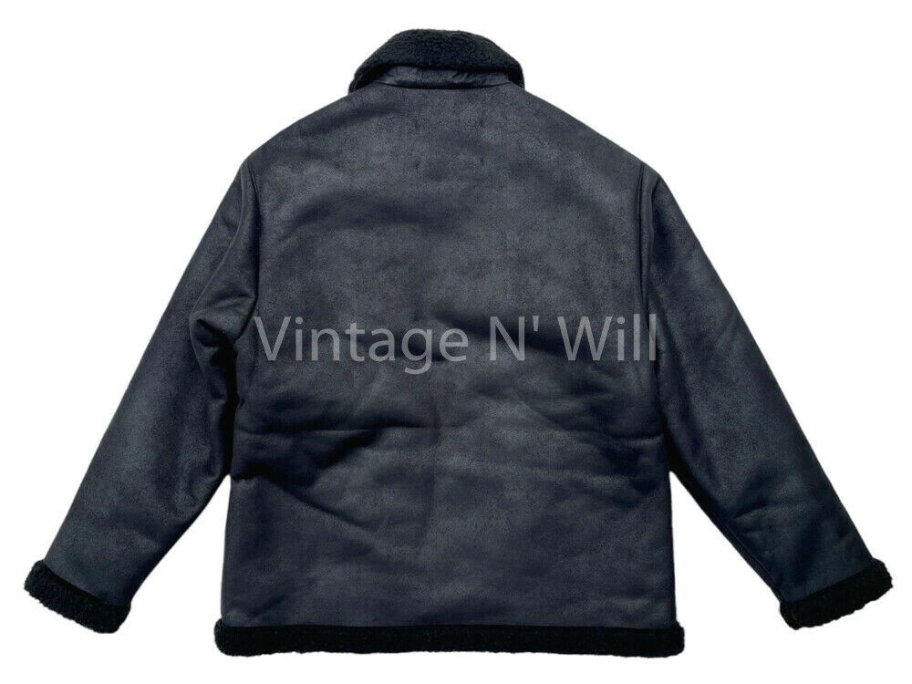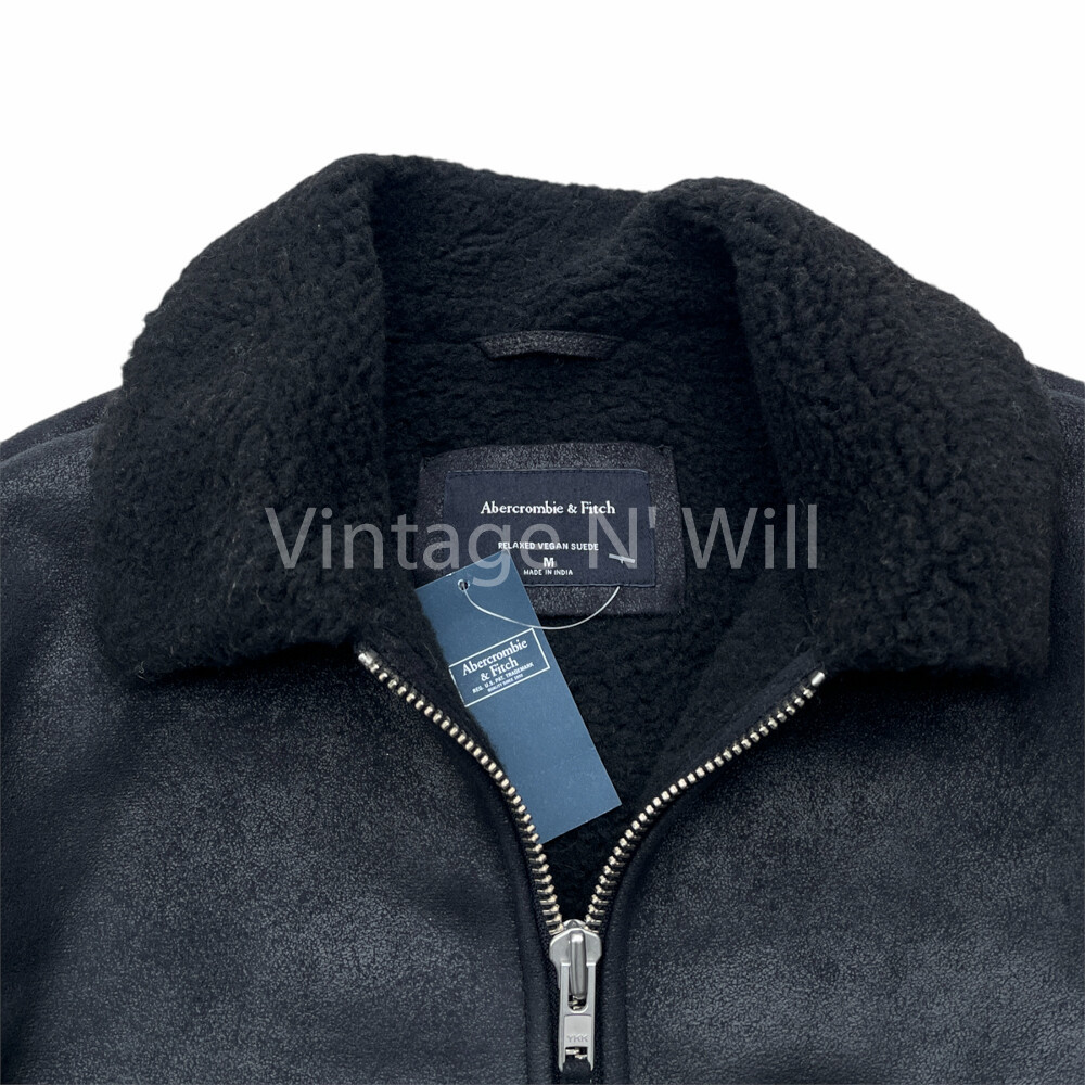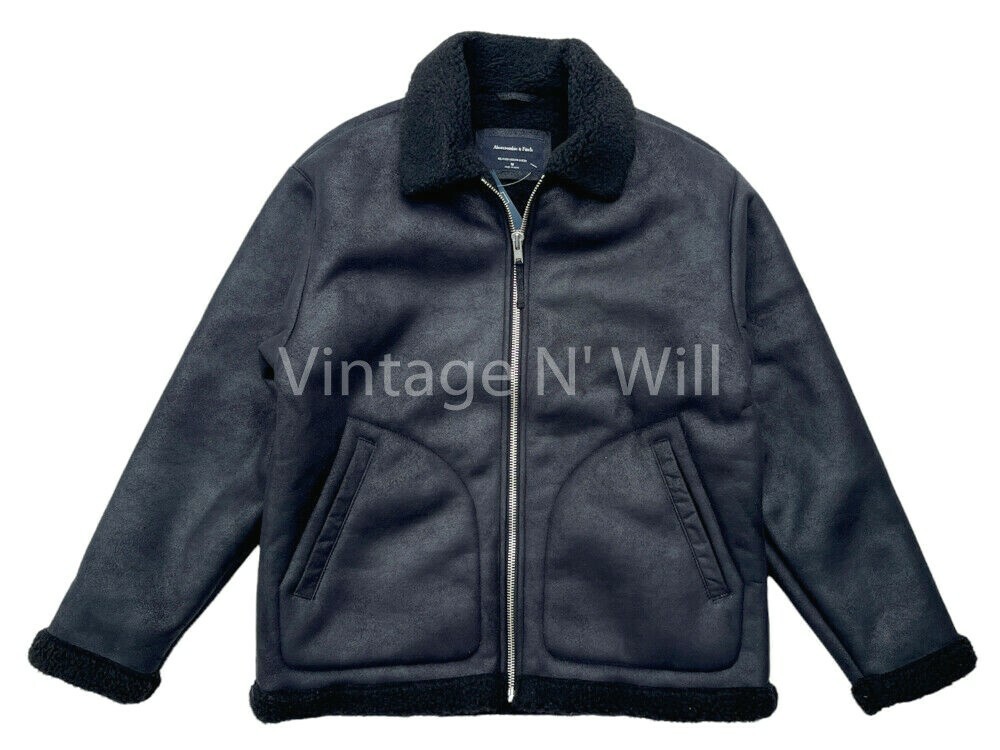 Abercrombie Fitch Mens Black Relaxed Fit Vegan Faux Suede Sherpa Aviator Jacket