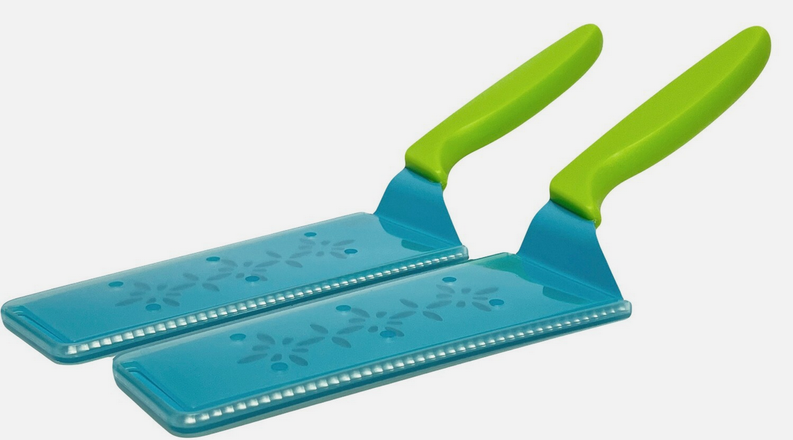 The Kuhn Rikon Slice Serve Knives Set of 2 with Sheaths is a versatile and practical addition to any kitchen. This set includes two spatulas made from high-quality stainless steel, making them durable and easy to clean. The colorful multicolor design adds a touch of style to your kitchen tools. Perfect for cutting and serving a variety of foods, these knives are a must-have for any cooking enthusiast looking for precision and convenience in their kitchen utensils.