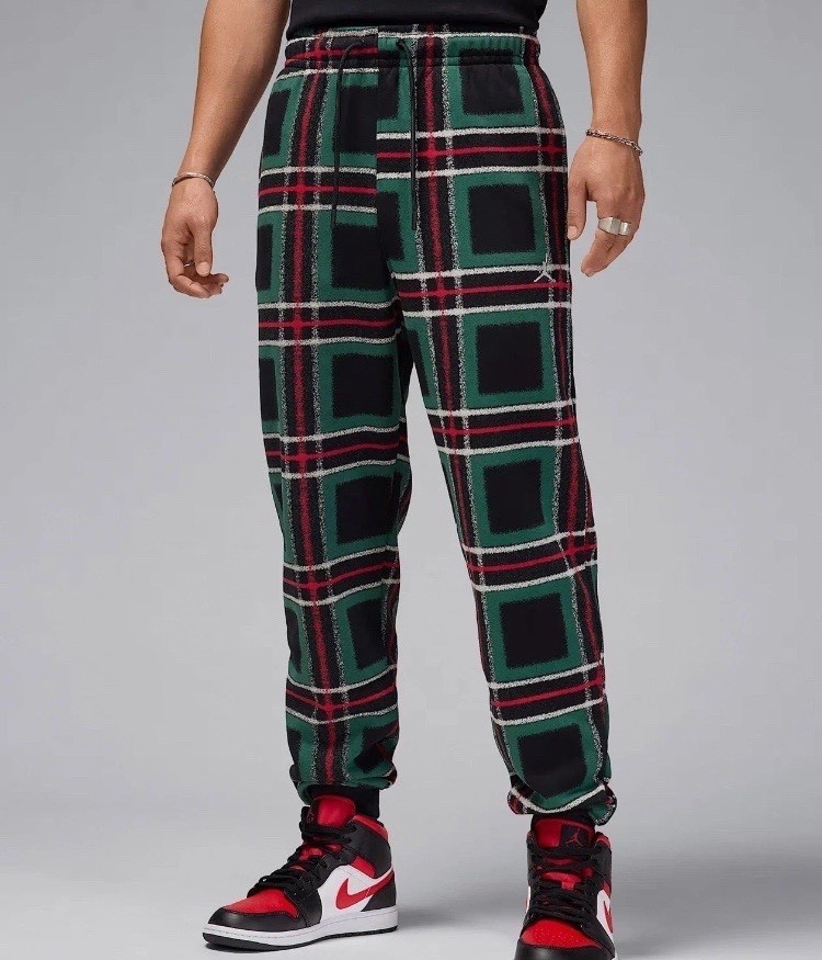 NWT men's medium nike Air Jordan essential Fleece Sweatpants plaid FV7462-010